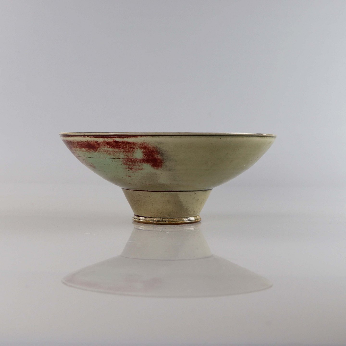 Skål i keramik med mønstret glasur i røde og blågrønne nuancer