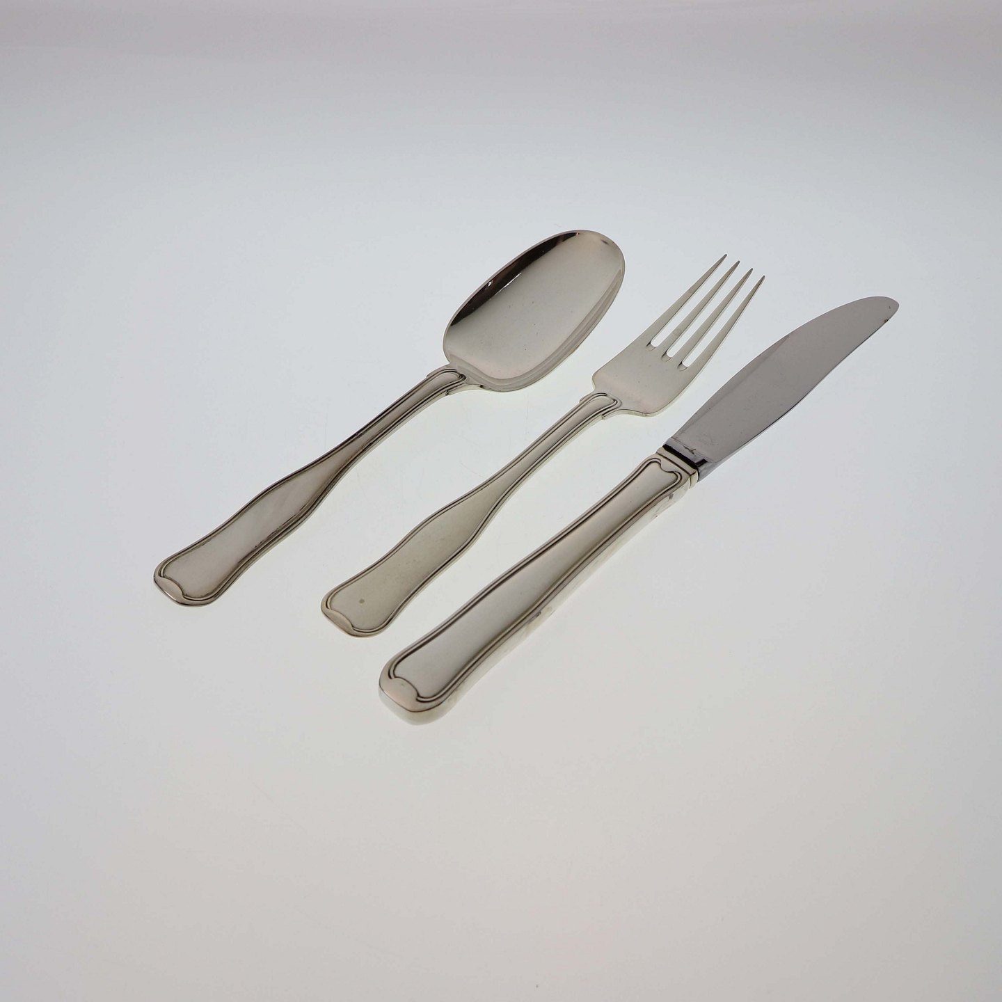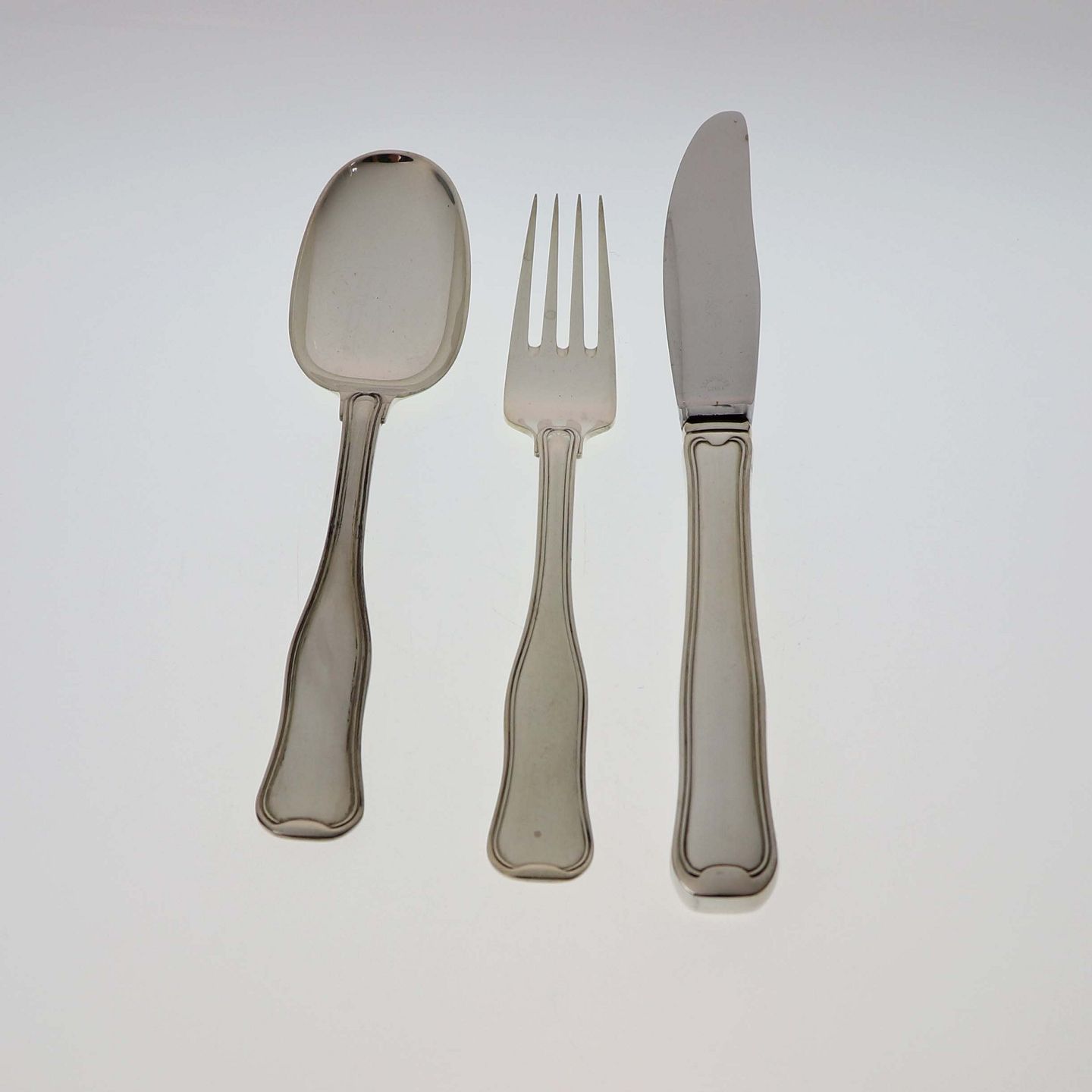 Kniv, gaffel og ske i sterling sølv model Dobbelt riflet