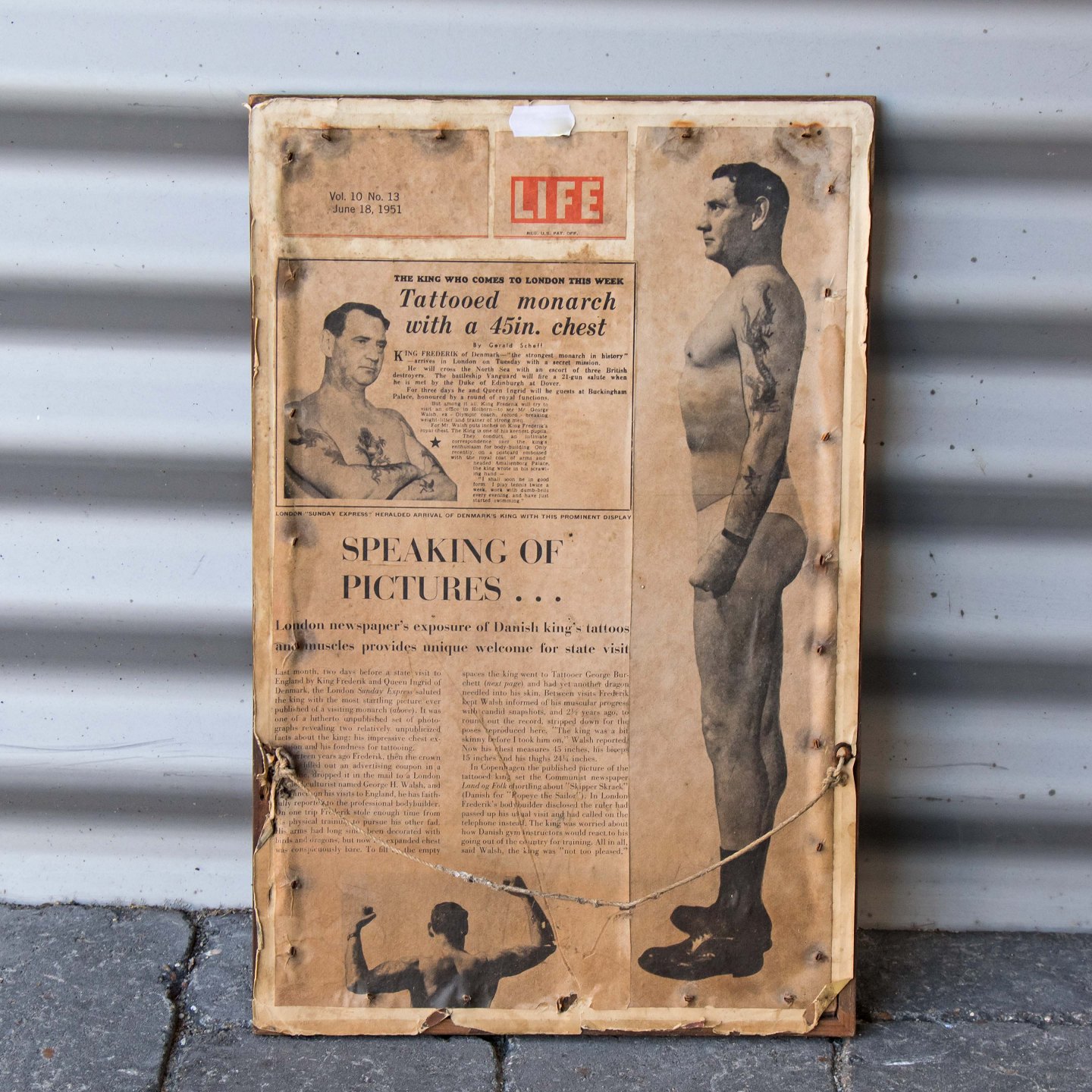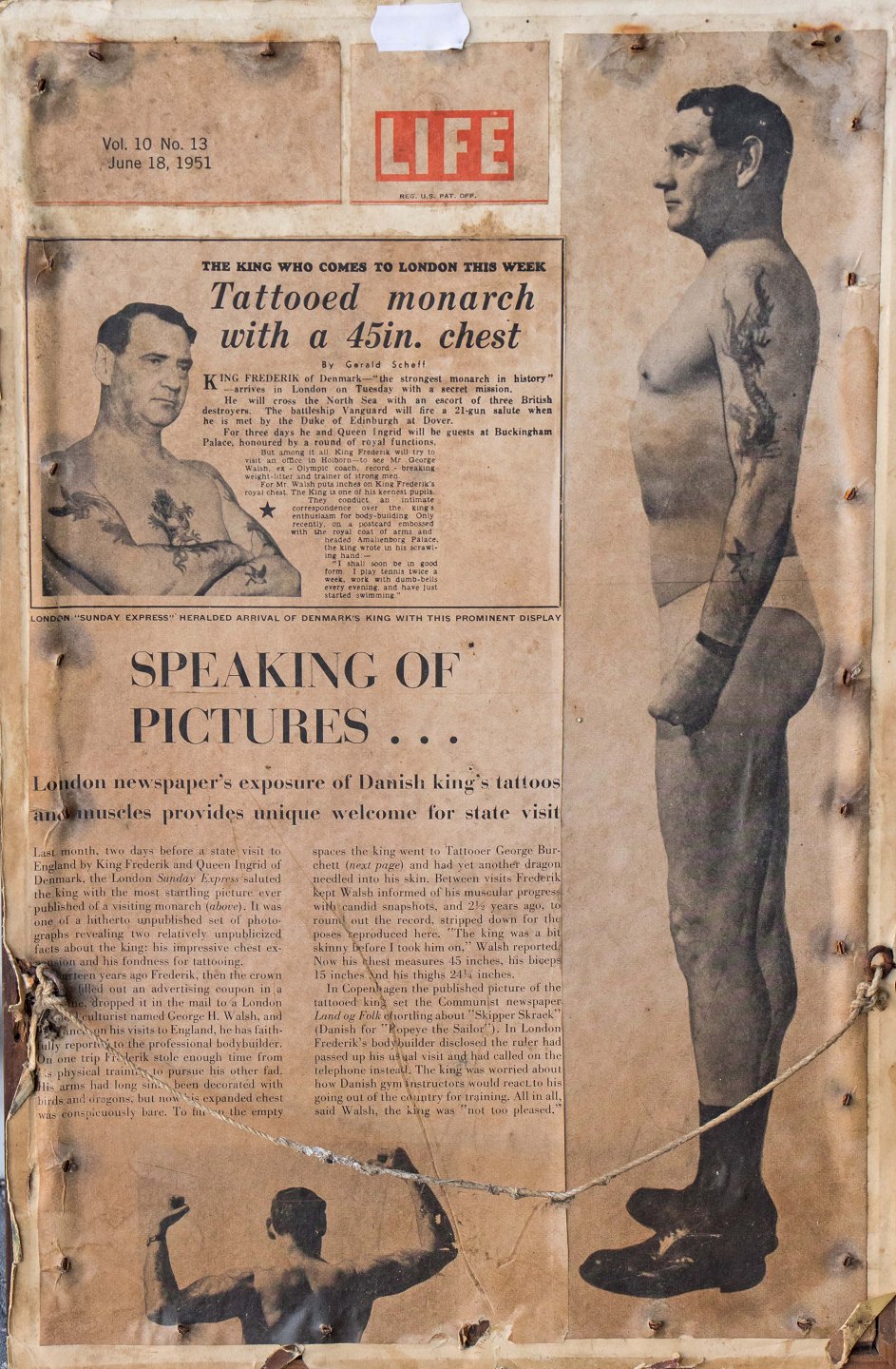 Bagsiden af rammen er beklædt med uddrag fra avisartikler på engelsk fra den 18. juni år 1951 omhandlende den danske konge.