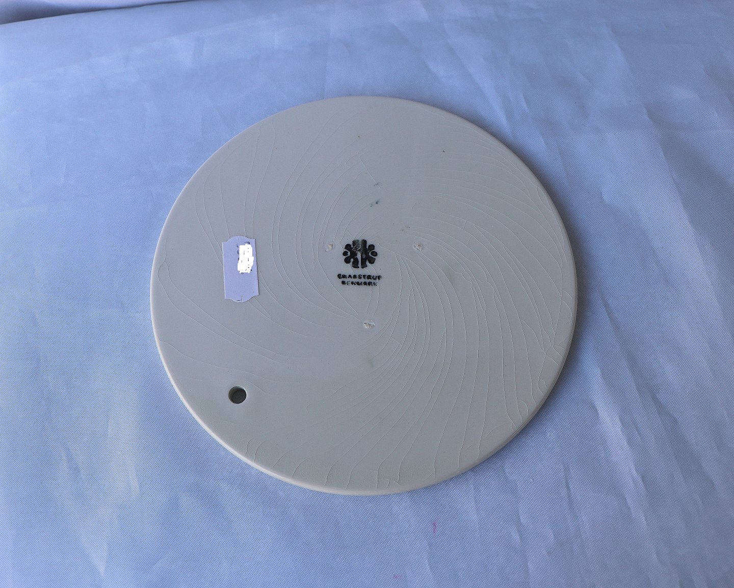 Robert Storm P. platter/smørrebrædder, fra Knabstrup. Platterne er med citater fra Storm P. Motivet er tegnet med sort streg