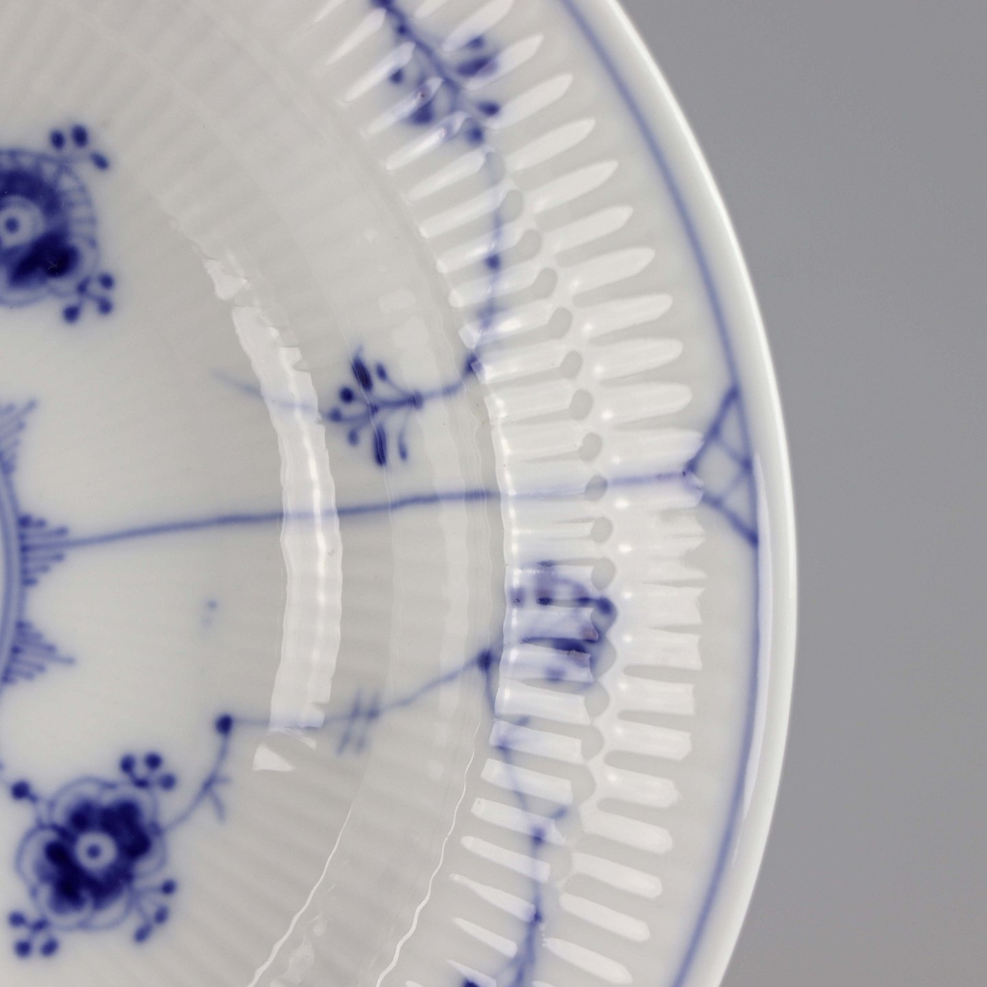 Dyb tallerken i porcelæn i serien musselmalet riflet nr. 1/168