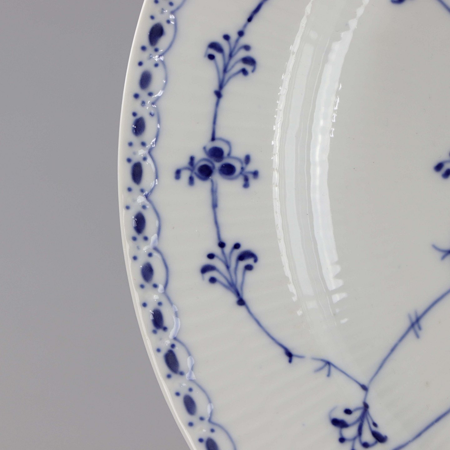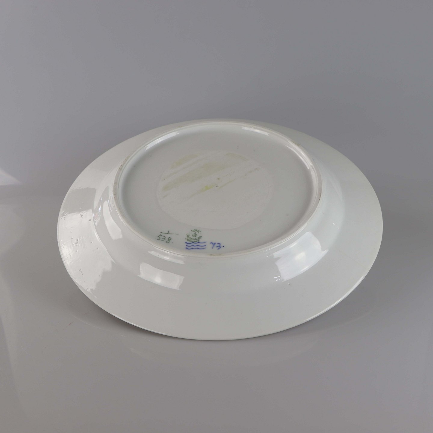 Rundt fad i porcelæn i serien musselmalet halvblonde nr. 1/538