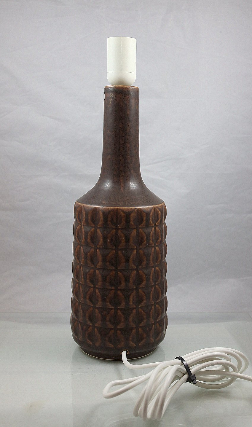 Desiree Stentøj. Brun bordlampe i stentøj, farven er tidstypisk, lampen er fra 1970`erne