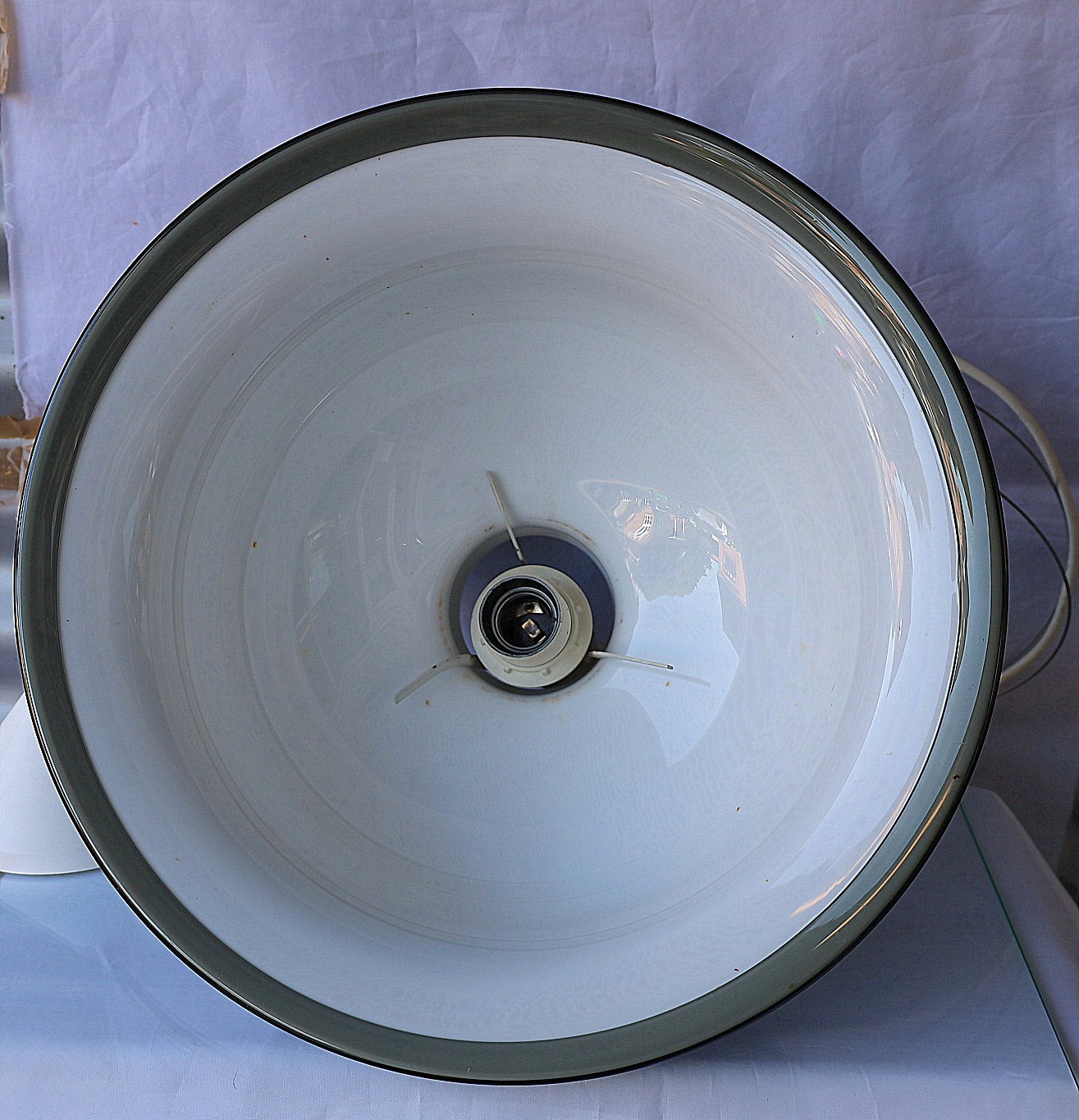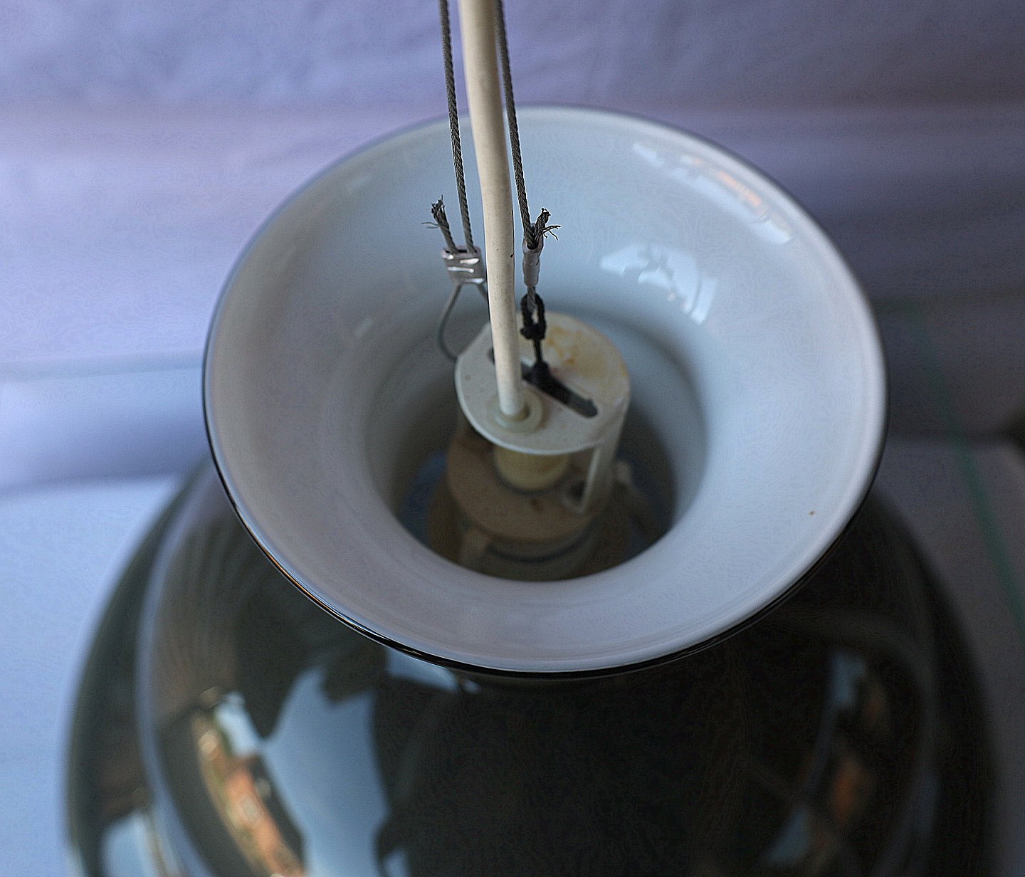 Holmegaard Glasværk. Kro Pendel. Hvidt opalglas med grønt overfang