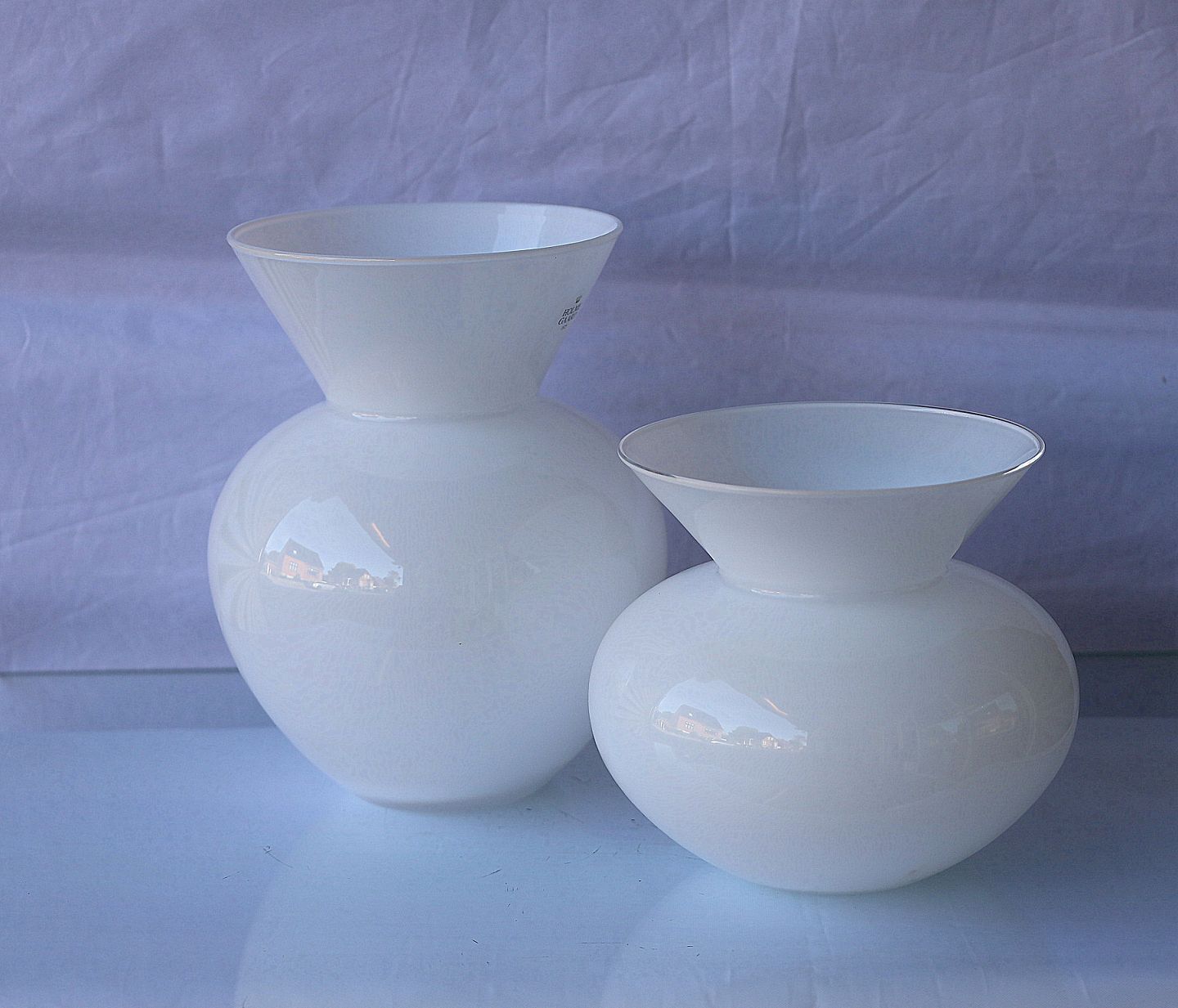 Holmegaard Glasværk. Rokokovaser af hvidt opalglas