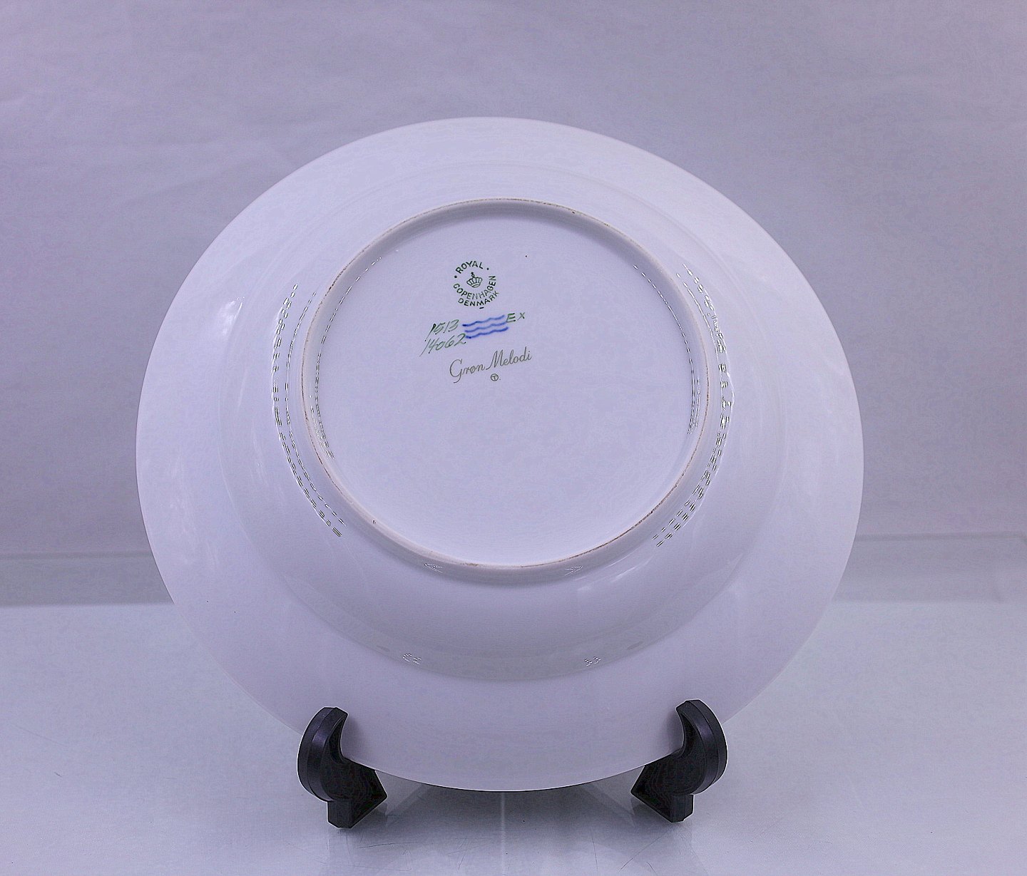 Royal Copenhagen. Grøn melodi/green Melody, dybtallerken no 1513/14062. Grøn melodi er hvidt riflet porcelæn, med blomster i grønt samt grøntbånd og guldbånd