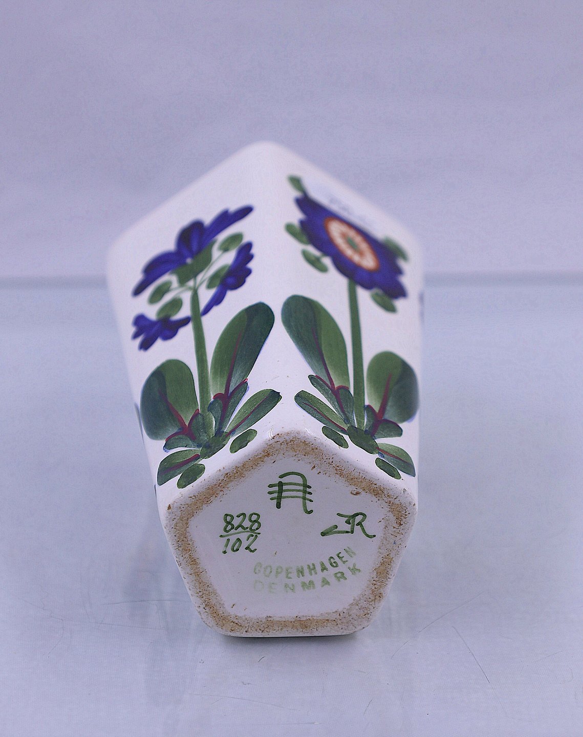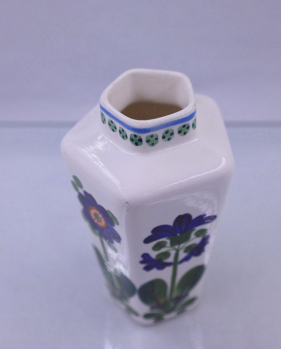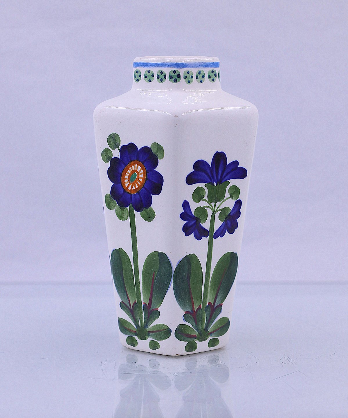 Dekorationen er blå viol, og glasuren er polykrom.