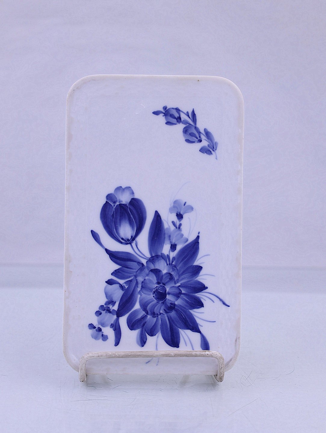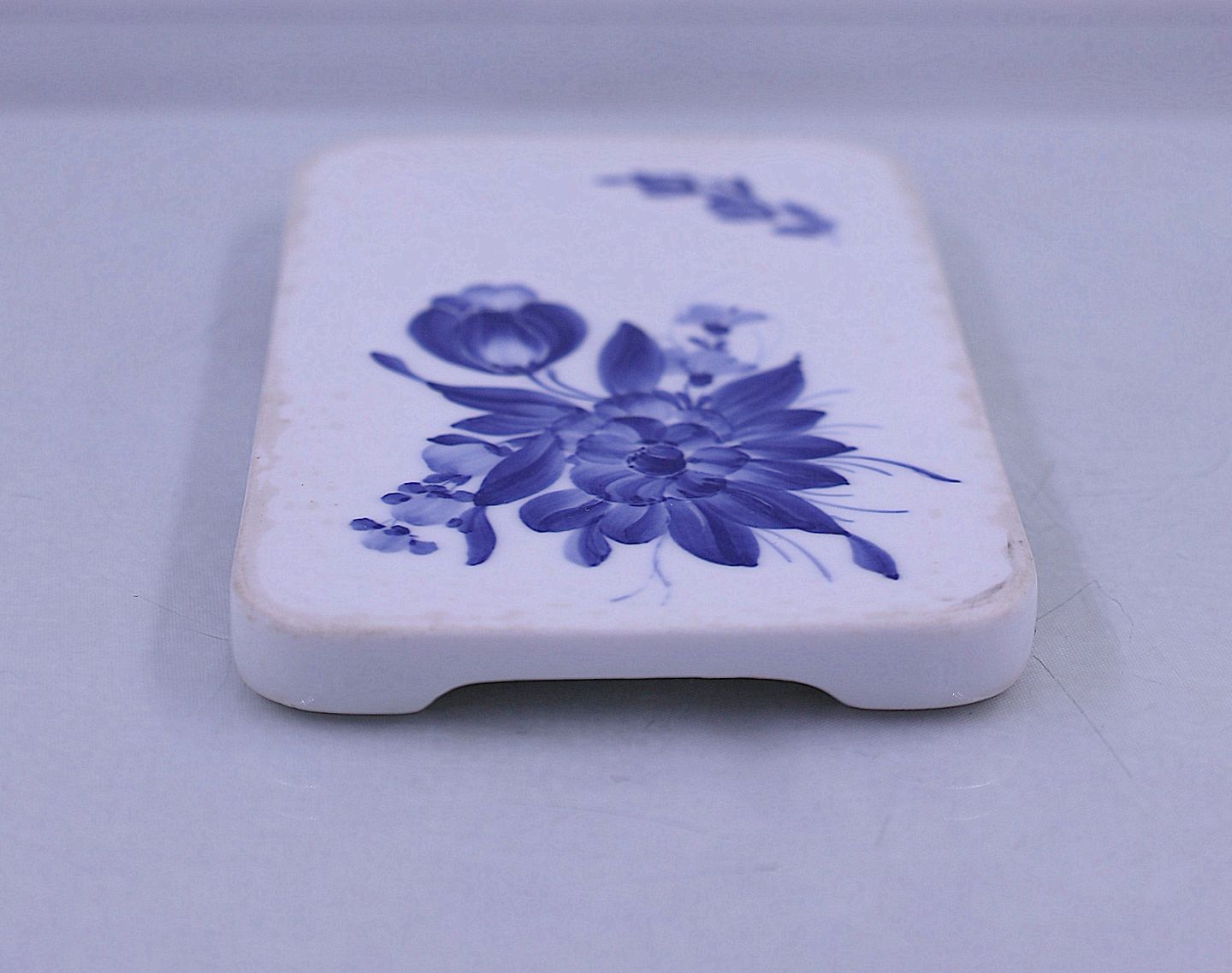 Royal Copenhagen. Smørebræt/bordskåner, nr. 10/8170, blå blomst med flettet kant. Smørebræt/bordskåner er malet mellem 1890-1920