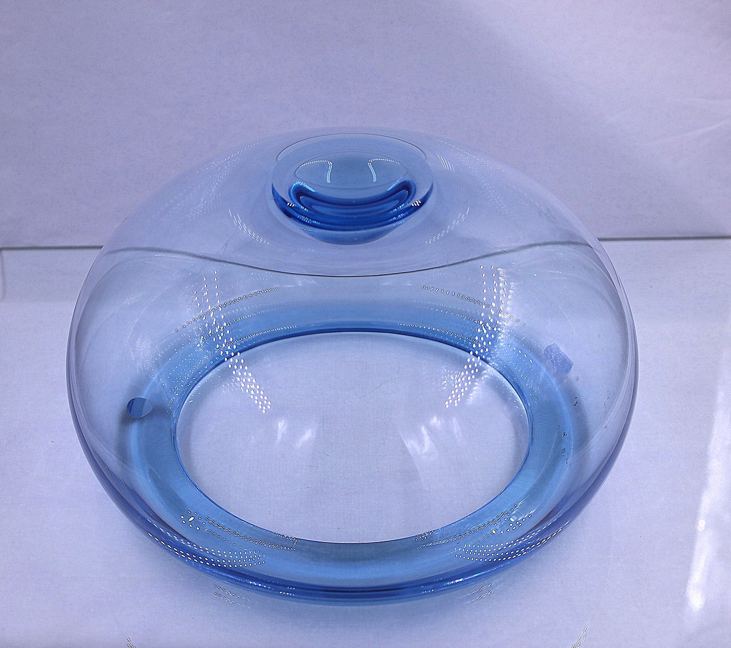 Skålen er af gennemsigtigt glas og produceret i 1980.
