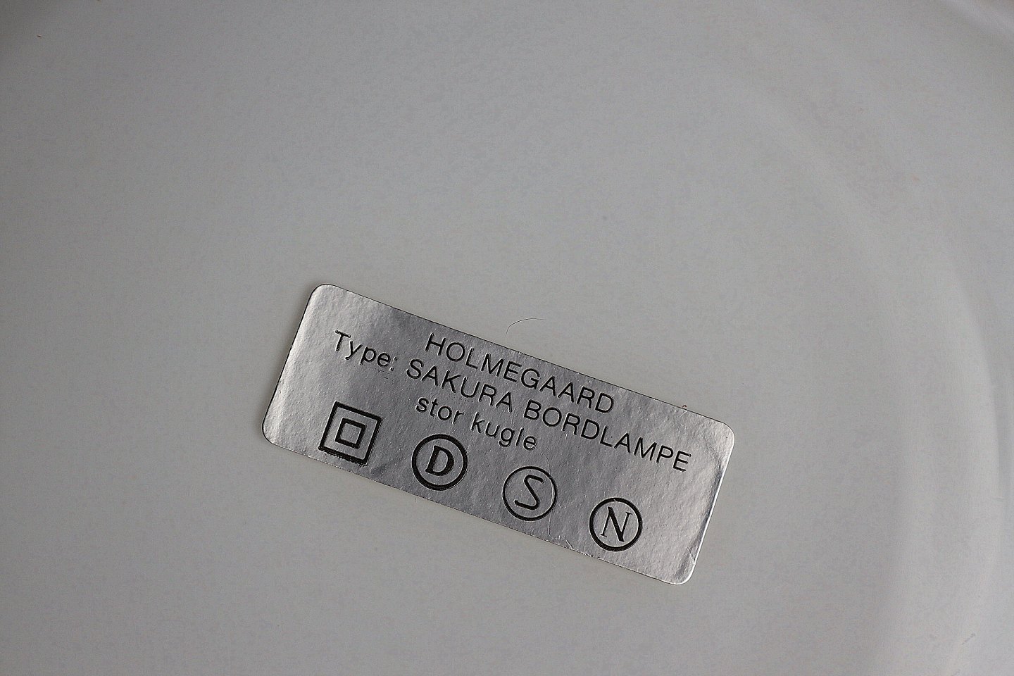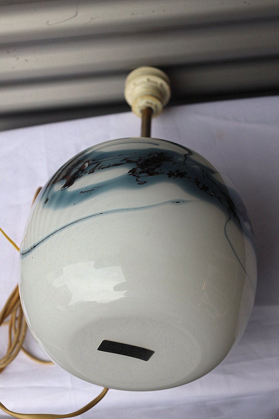 Holmegaard Glasværk. Stor Sakura Bordlampe, kuglerund. Sakura bordlampen er med blå bemaling og produceret på Fyens Glasværk 1980