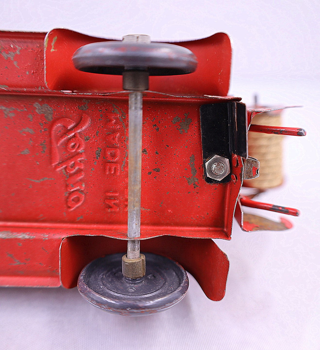 Falck Stige vogn. Stige vogn med aftagelige stiger. Tekno, Made in Denmark, bilen er lavet af blik. Der er brugsspor på bilen