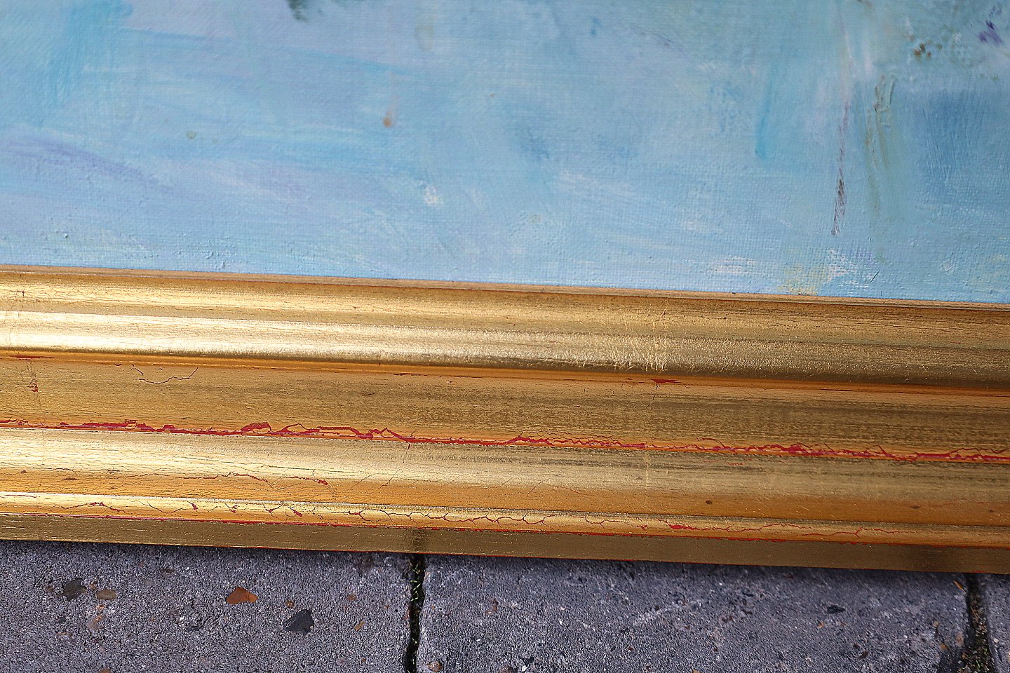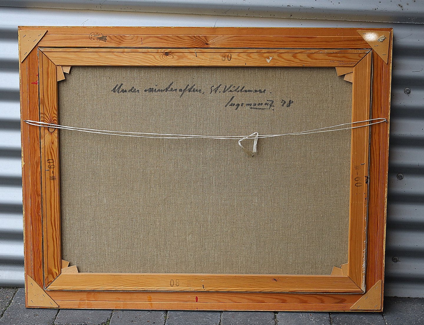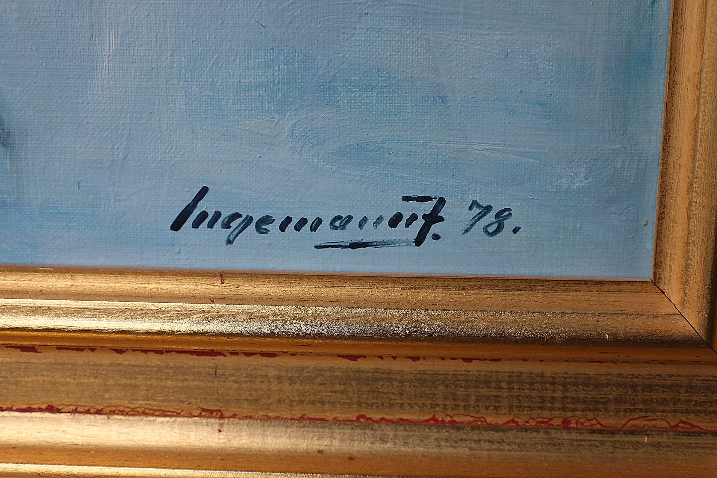 Maleri, Ingemann Jørgensen (1921-1982). Vinteraften, Store Vildmose. Maleriet er i guldramme, der har enkelte brugsspor.