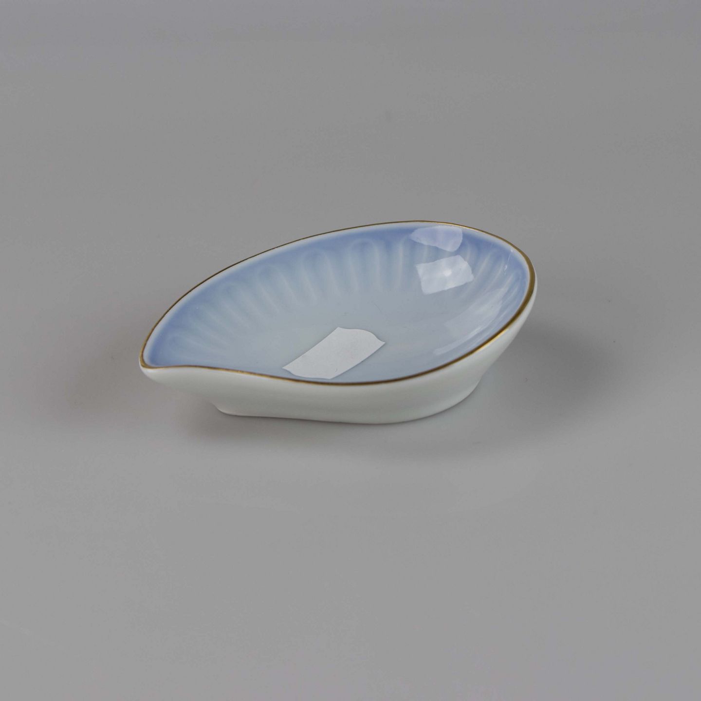 Asiet fremstillet i porcelæn med stribet motiv i gradueret blå nuancer.