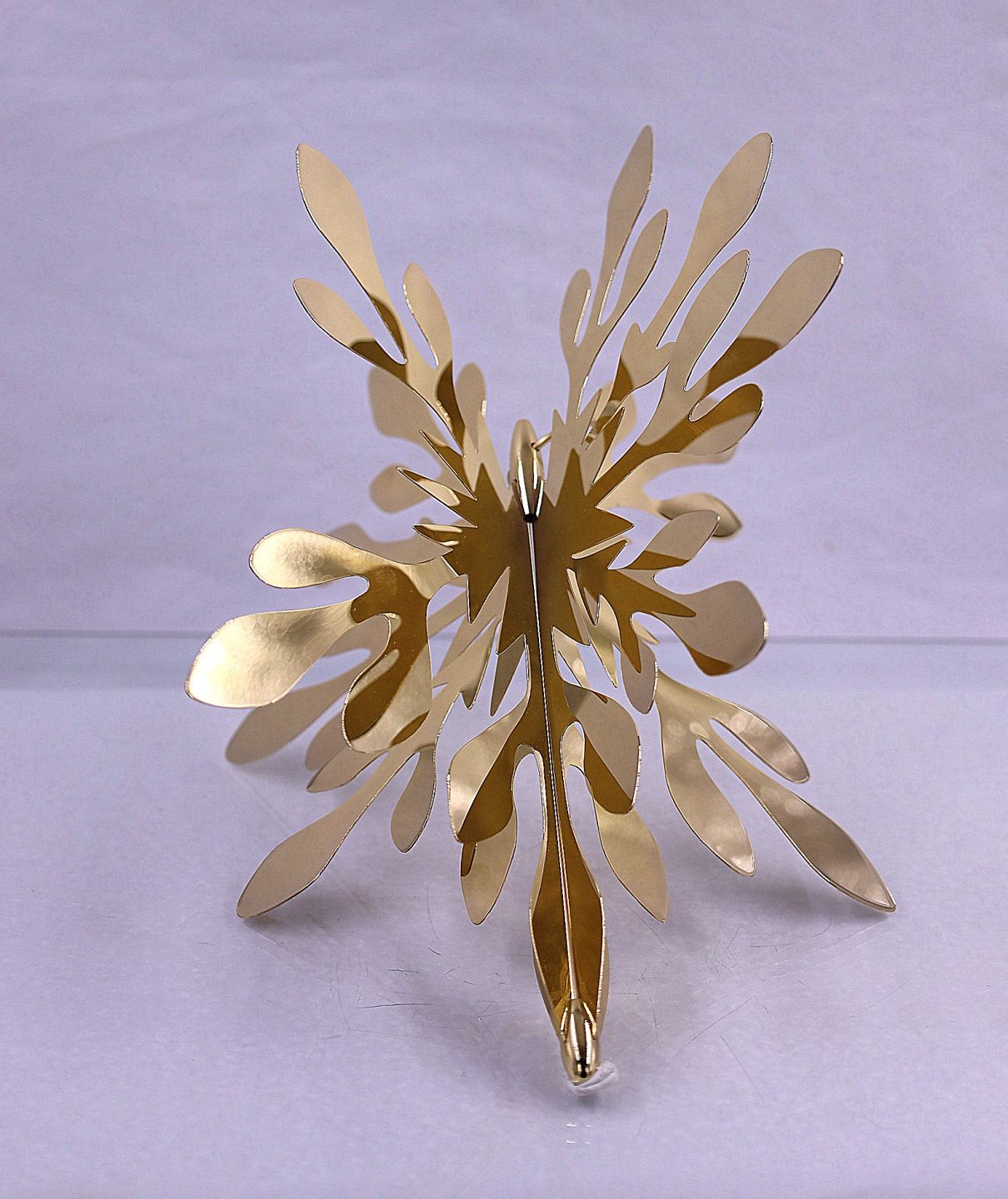 Georg Jensen. Kronblad topstjerne 2016, topstjernen kan både sættes på toppen af juletræet eller hænge. Kronblad topstjernen er stor størrelse. Topstjernen er messing belagt med 18 karat guld, og kommer i original æske, der er også et rødt ubrugt bånd med, der følger juletræs holder med.