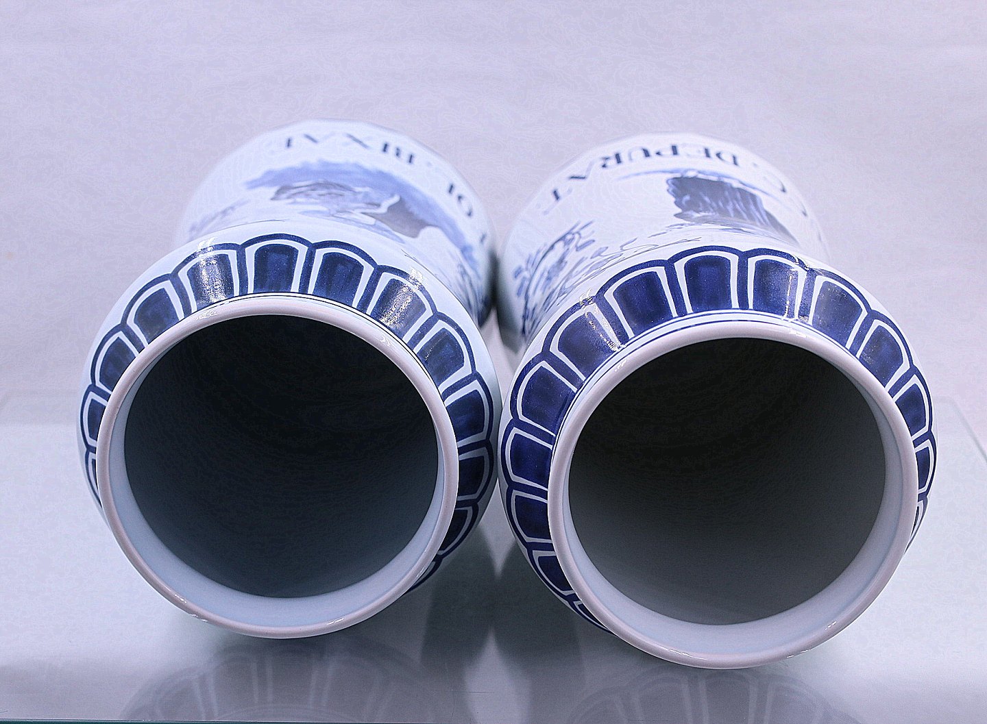 Delft apotekerkrukker, nr 700/1 og 700/2. Hollandske apotekerkrukker fra Delft, krukkerne er med låg. Delfterfajance, hollandsk fajance, fremstillet i byen Delft. Fra 1500-tallet blev der produceret fajance i Holland, og værkstederne i Delft var førende fra midten af 1600-tallet til ca. 1725.