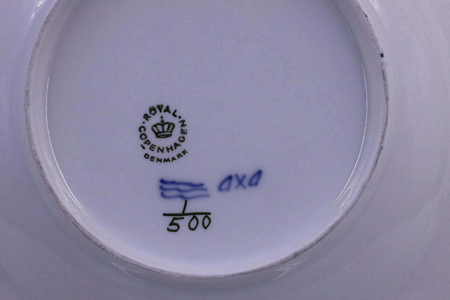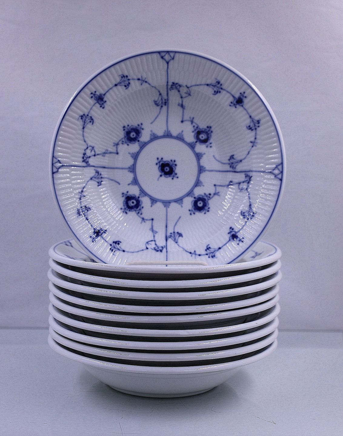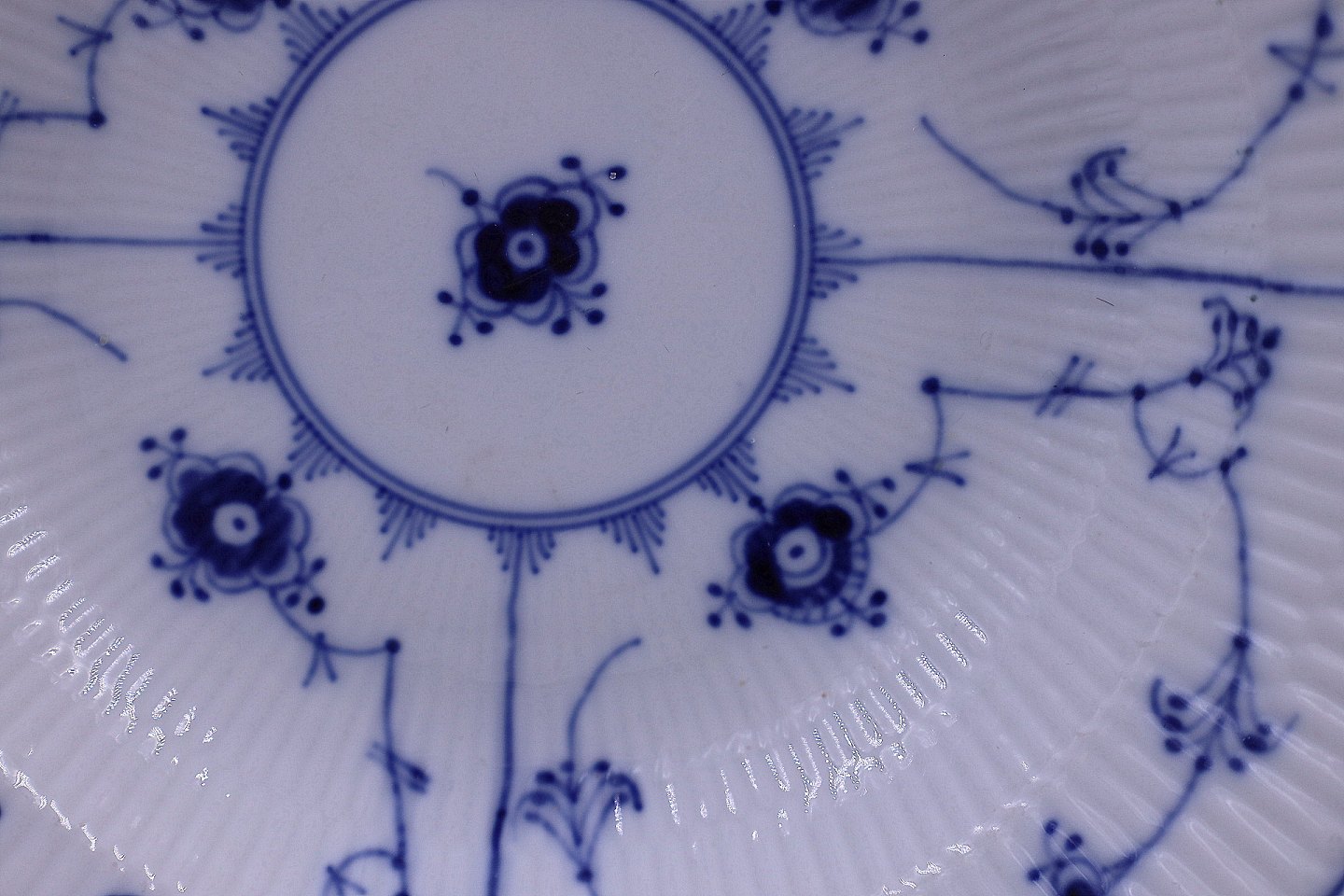 Royal Copenhagen. Riflet, musselmalet grødtallerken, nr. 1/500. Tallerkenen er af hotelporcelæn. 1. sortering.