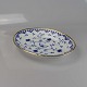 Fad i hvidt porcelæn med guldkant med blå motiver af blomster og sommerfugle.