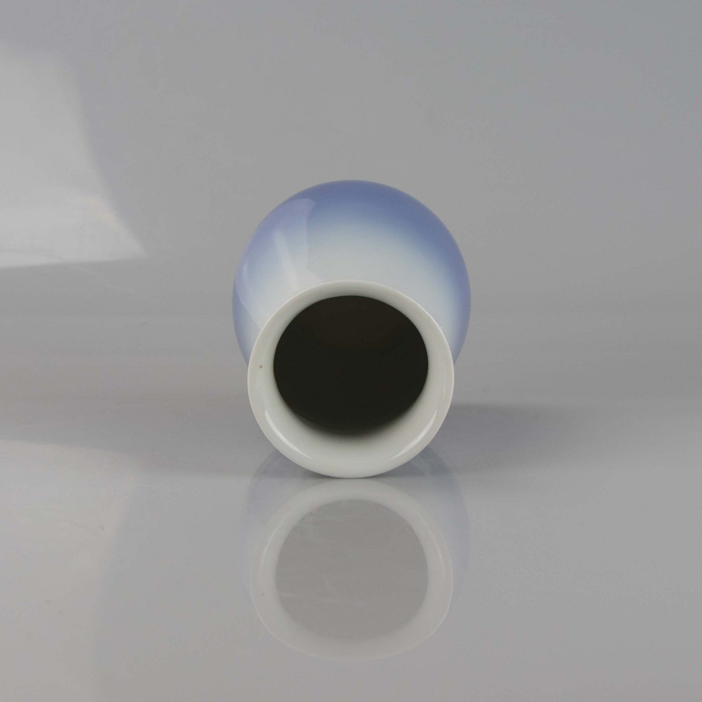 Vase i hvidt og gradueret blå porcelæn med motiv af julerose.