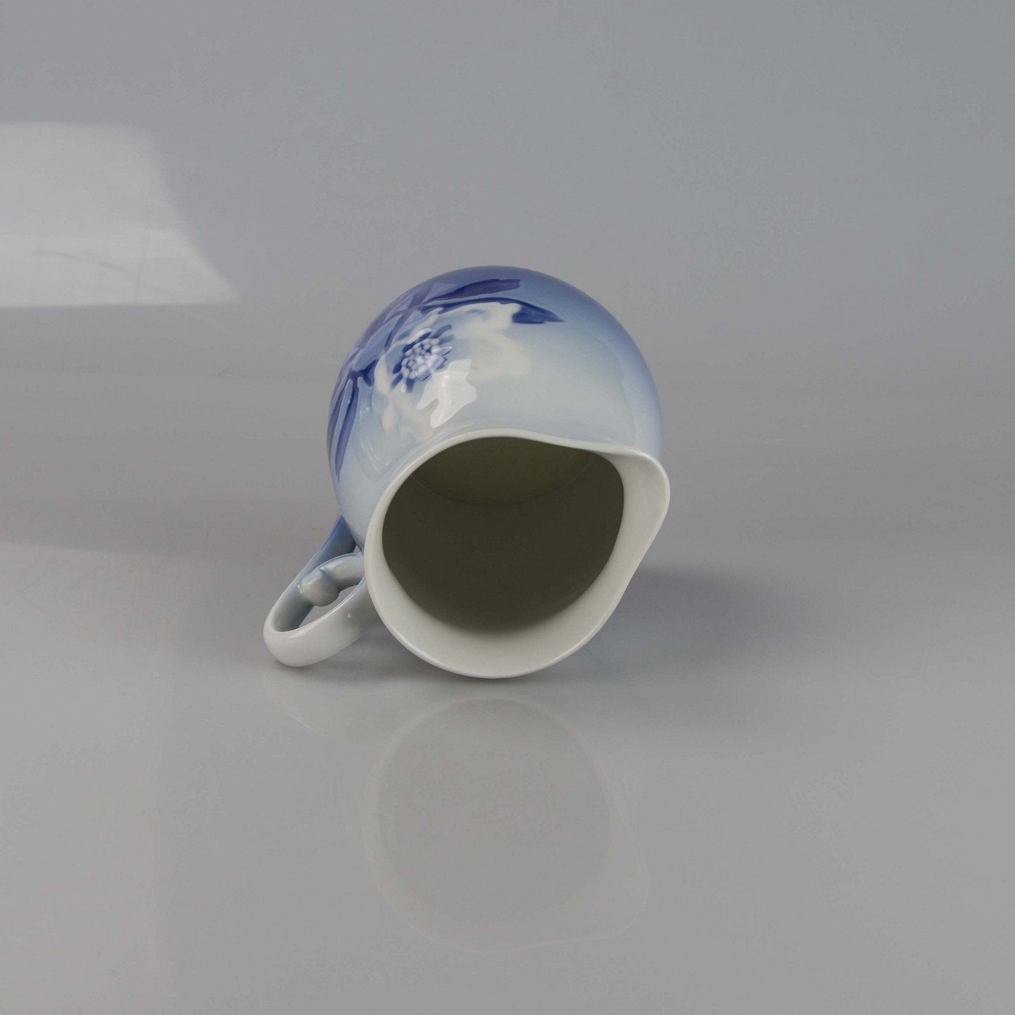 Kande i hvidt og gradueret blå porcelæn med motiv af julerose.