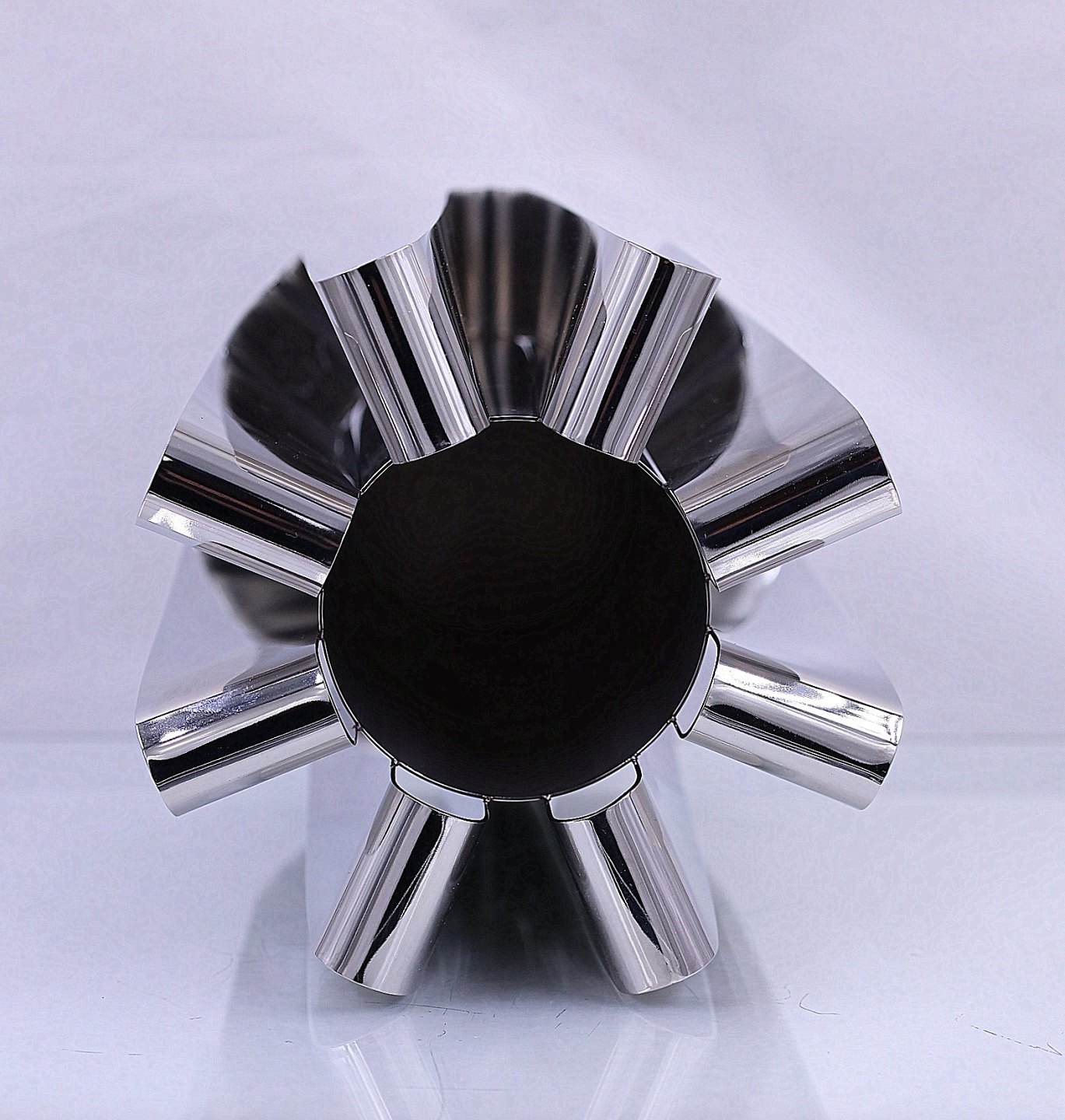 Georg Jensen. Stor vase i Frequency kollektionen udført i glaspoleret rustfrit stål, der er valset i 8 smukt bølgende bånd. Design år 2018, lanceret 2019. Vasen er uden ridser og andre brugsspor