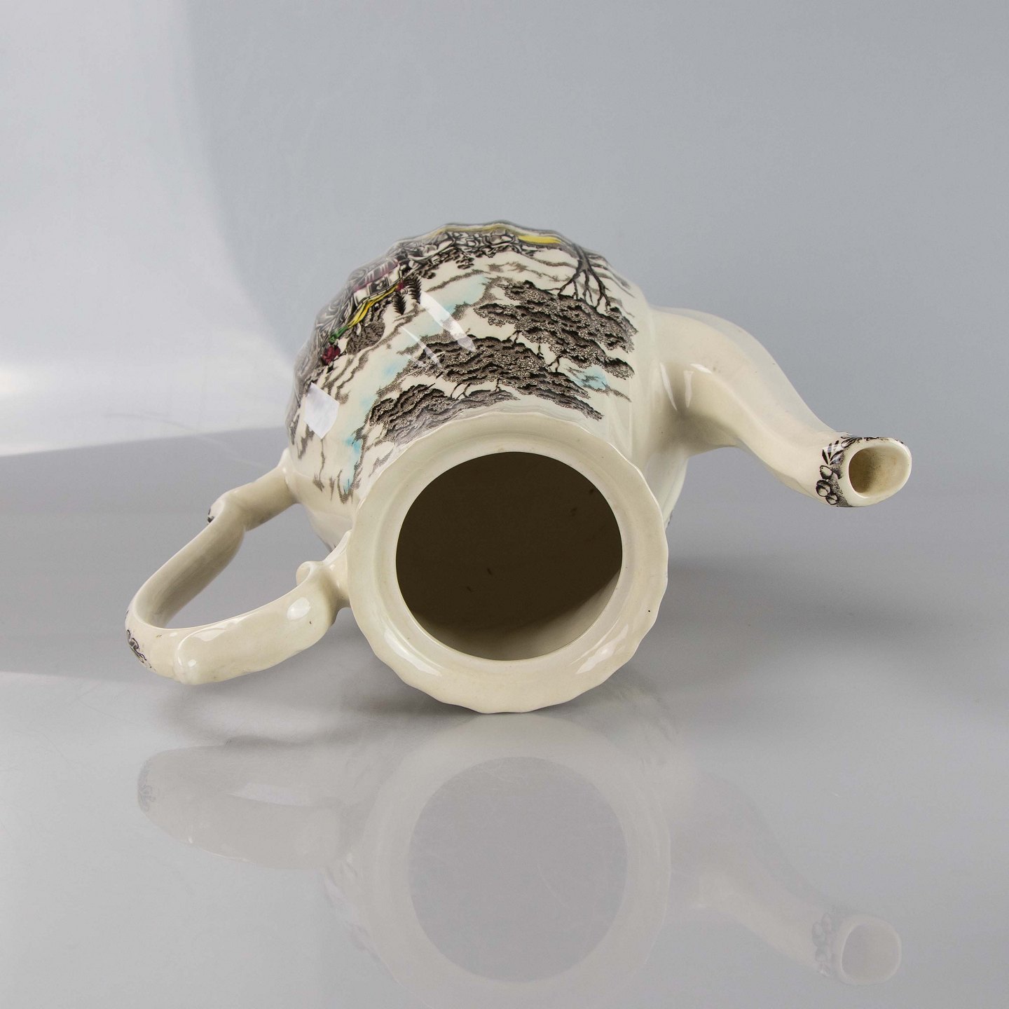 Kande i cremefarvet ironstone med multifarvet motiv af postvogn i landskab.