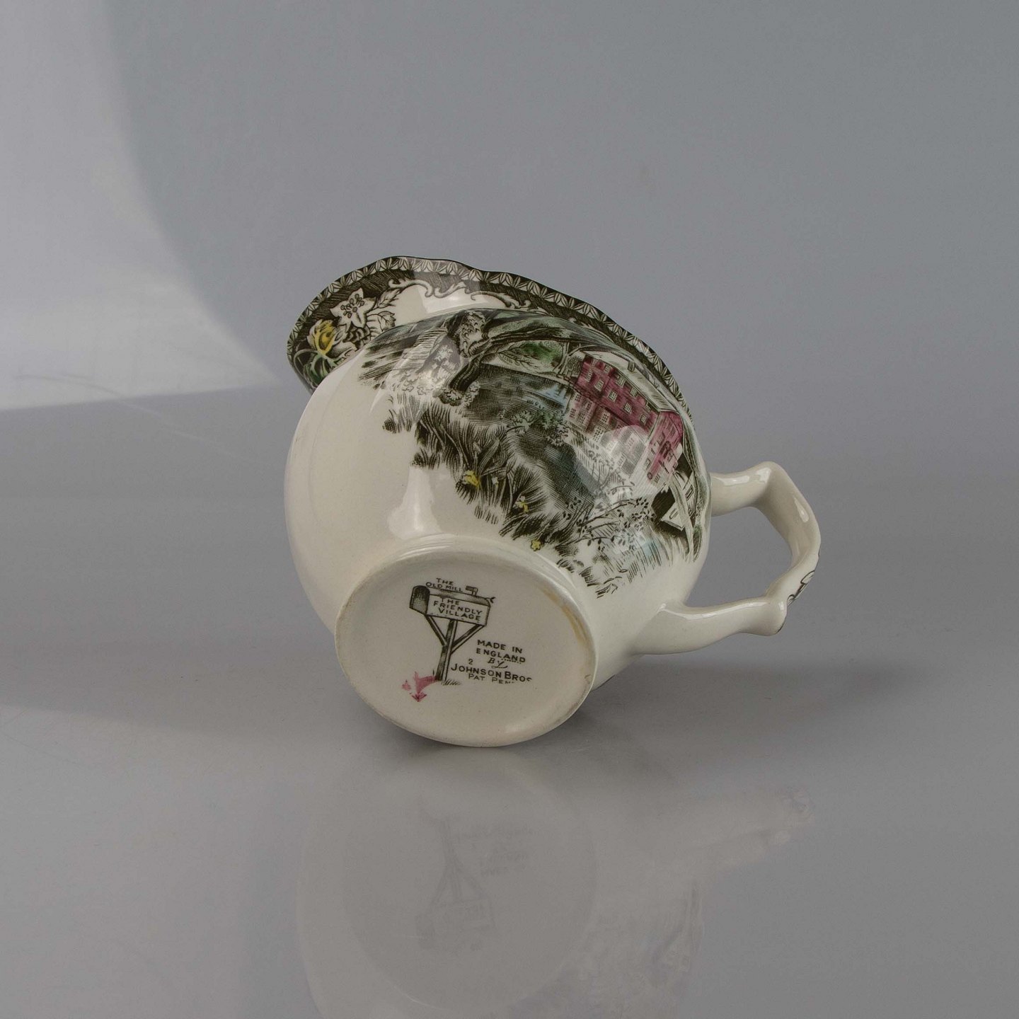 Kande i lys fajance med multifarvet landsbymotiv af The old mill.