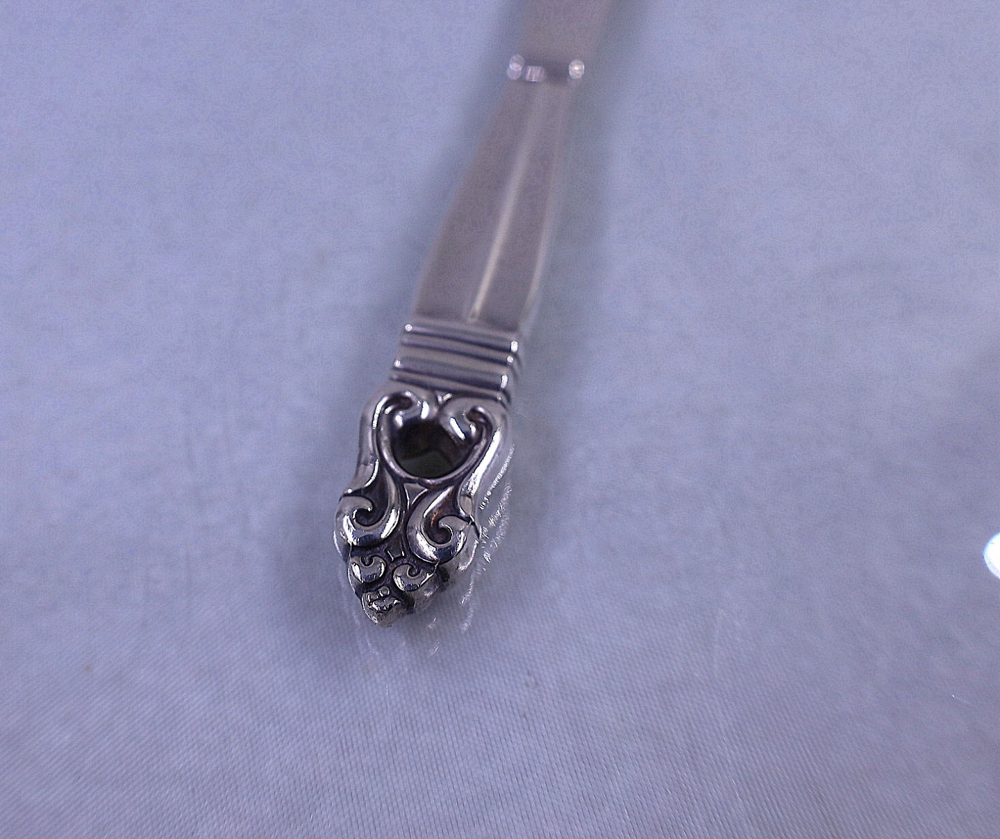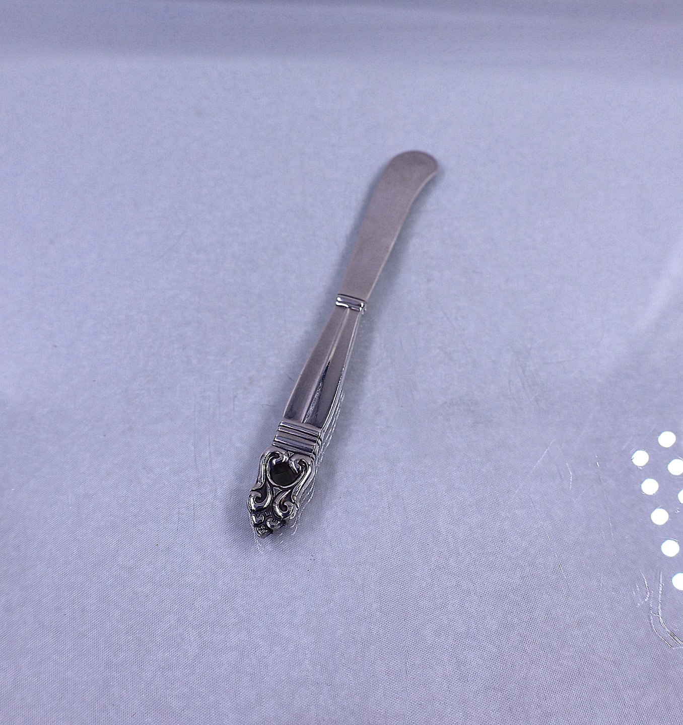 Skaftet er af sterlingsølv og knivsbladet er af rustfrit stål, kongemønsteret blev skabt 1915