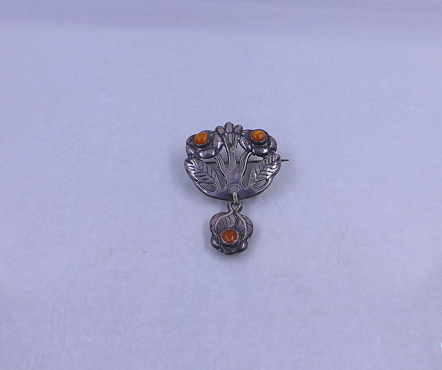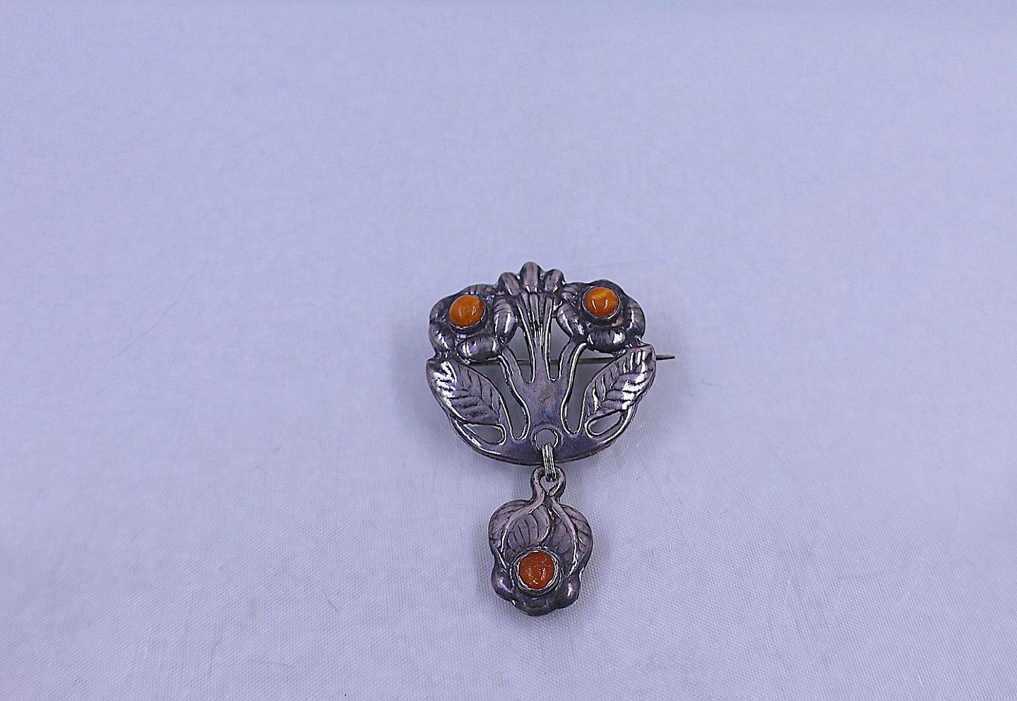 Sølvbroche Art Nouveau sølv/rav