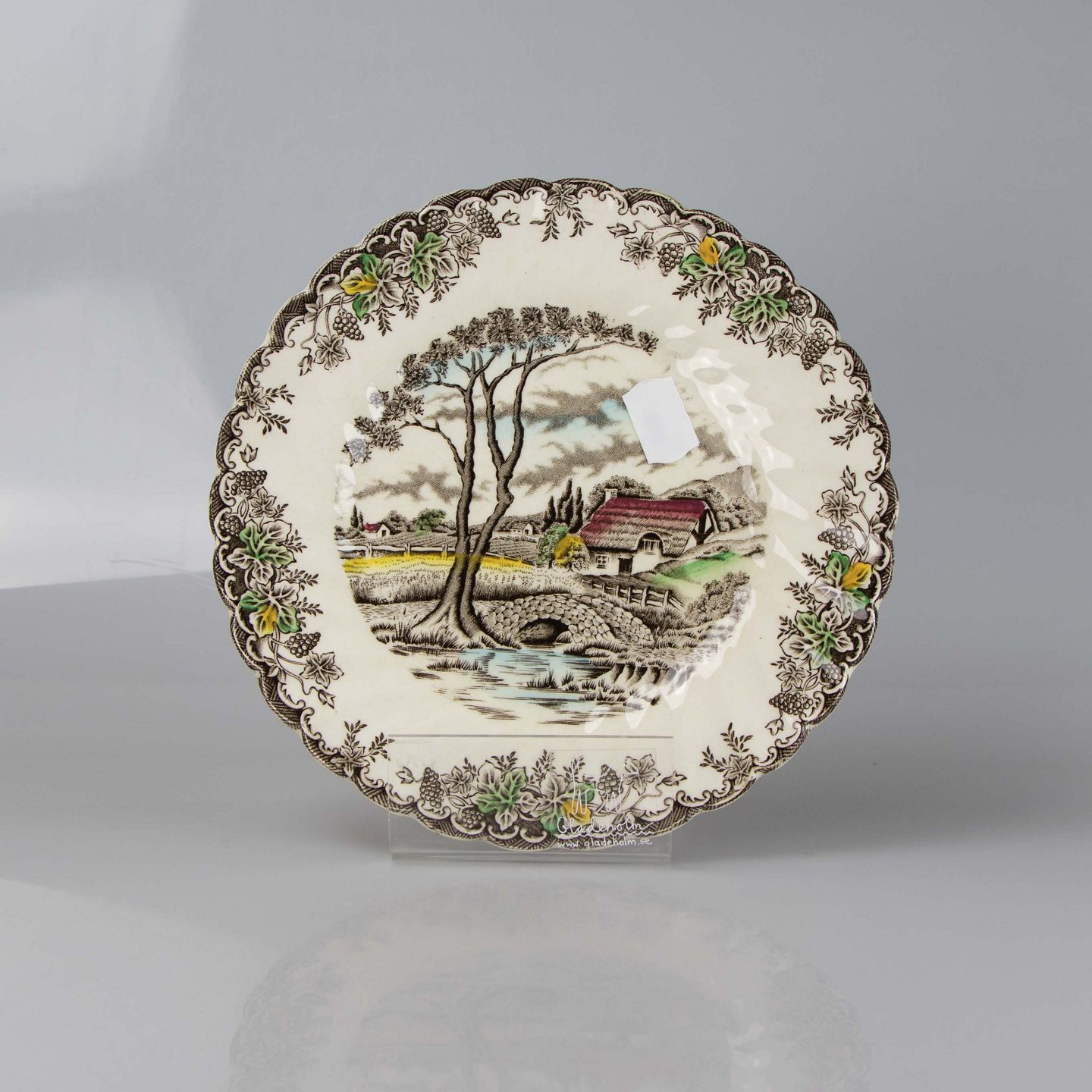 Flad tallerken i engelsk fajance fra stellet The Brook