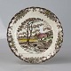 Tallerken i lys fajance med multifarvet landligt motiv.
