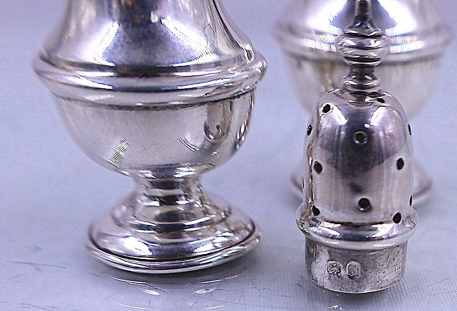Saltsæt i sølv, saltbøsser. Saltsæt i form af pokaler, med rund fod.
