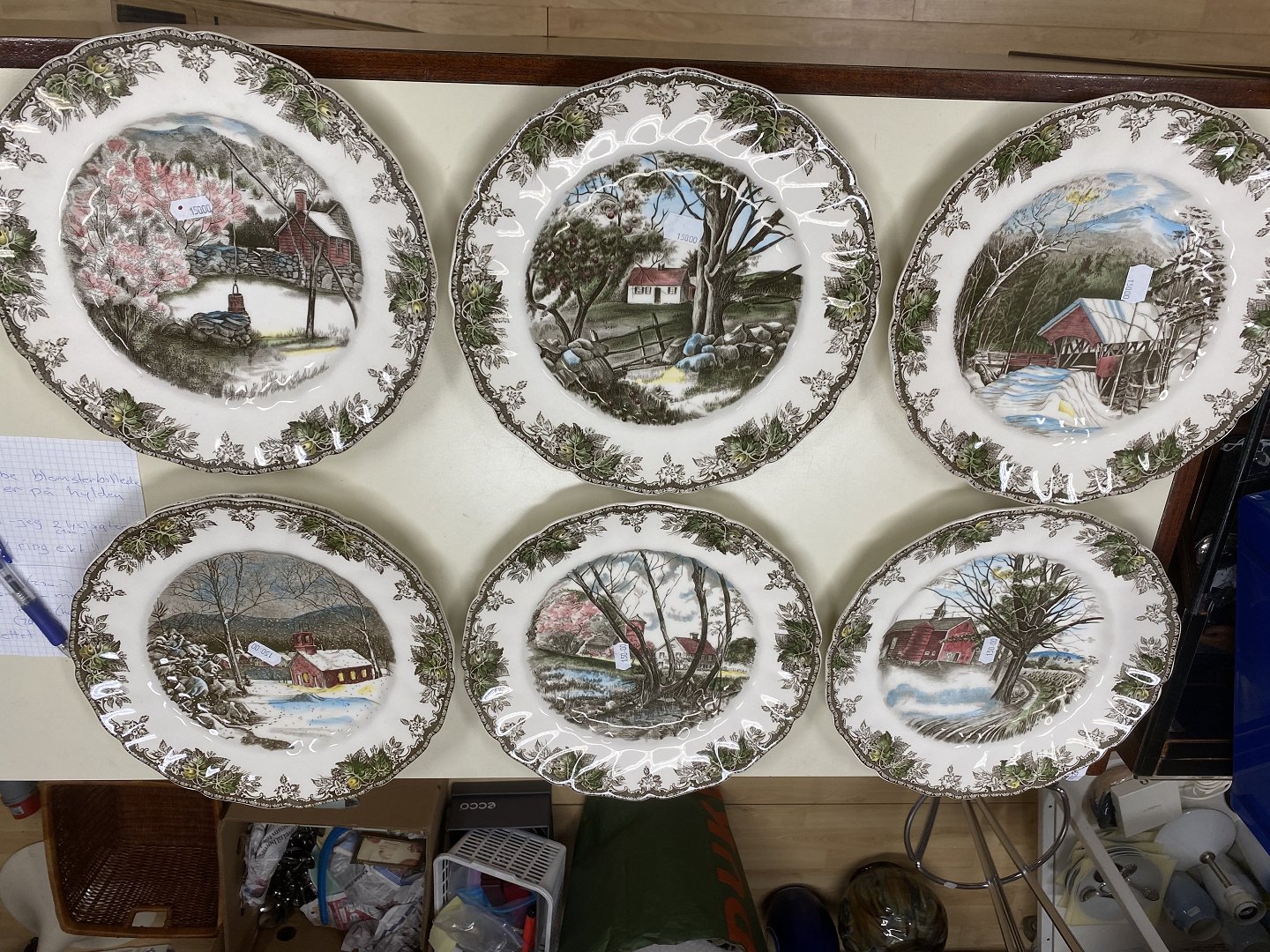 Stor middagstallerken i engelsk fajance fra stellet The Friendly Village