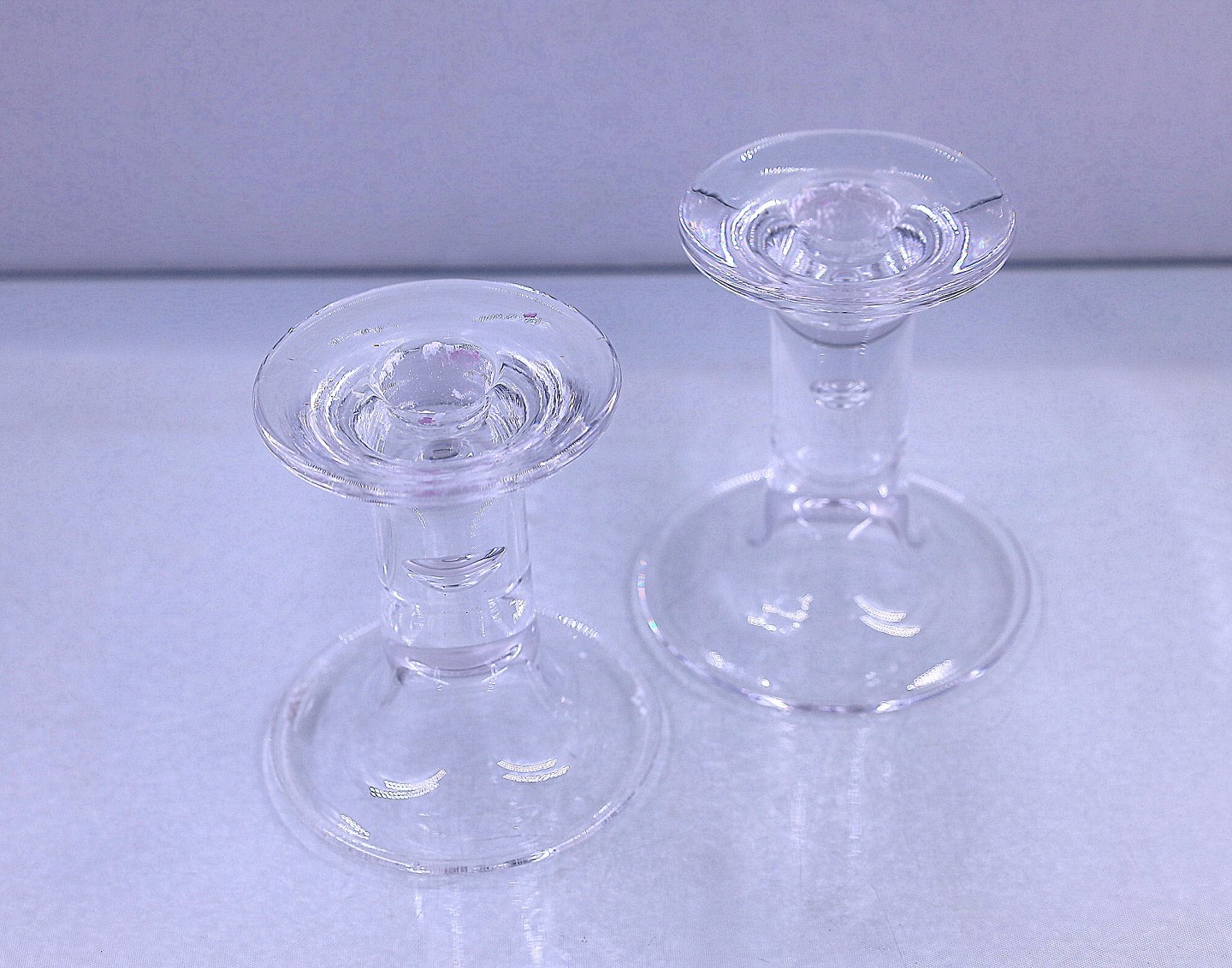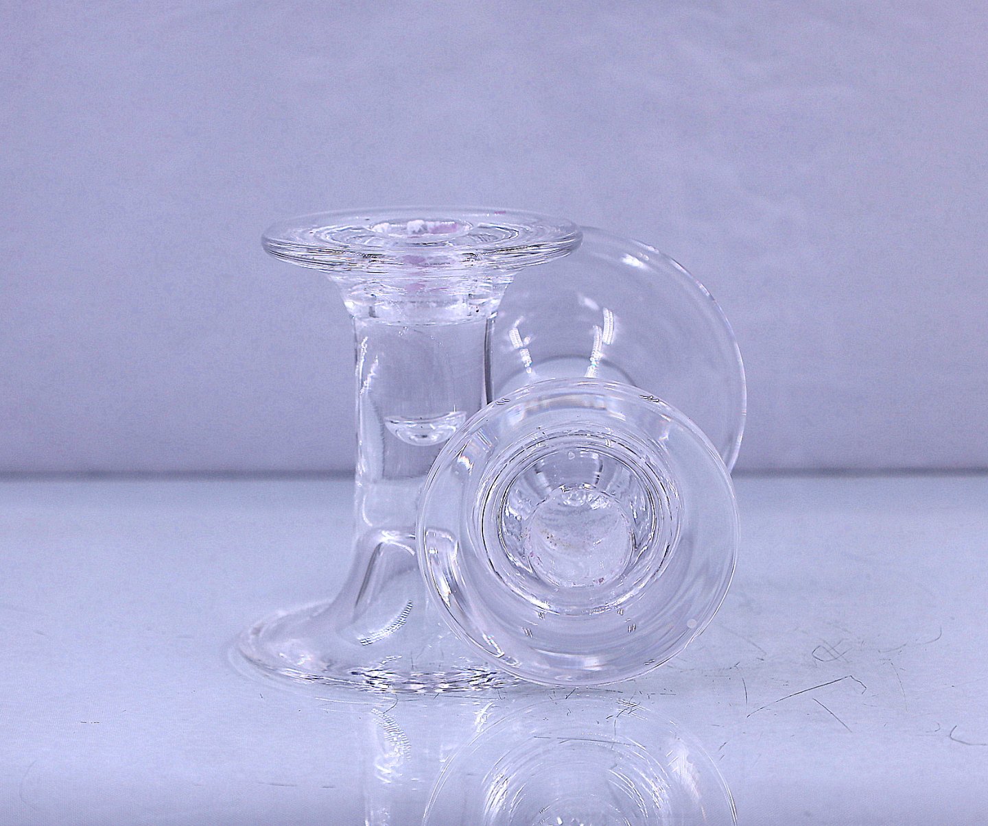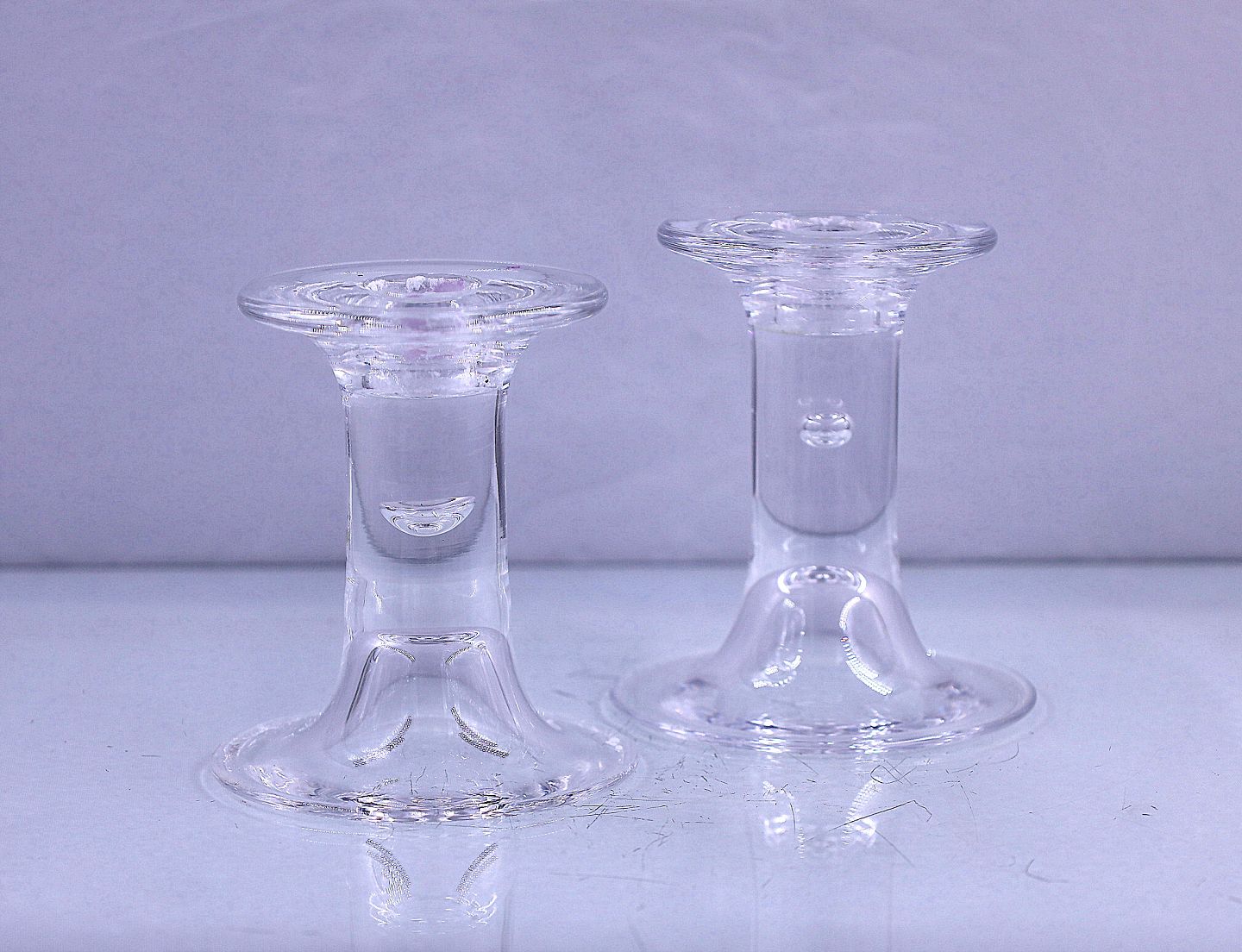 Holmegaard Glasværk. Vendbare lysestager, lysestagerne er med luftboble i den massive del.