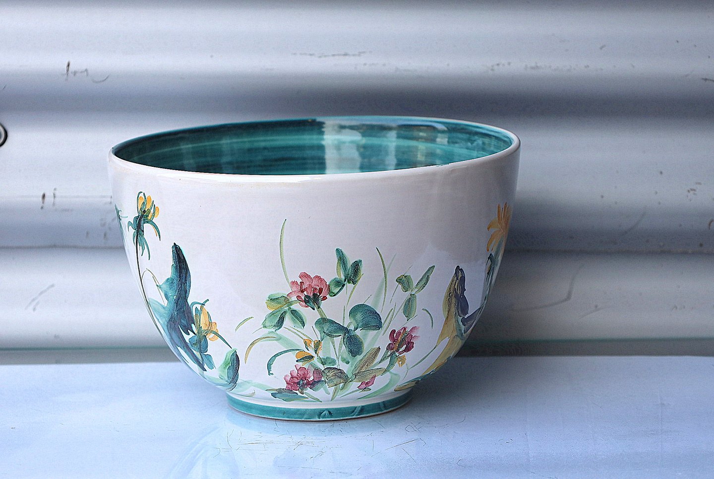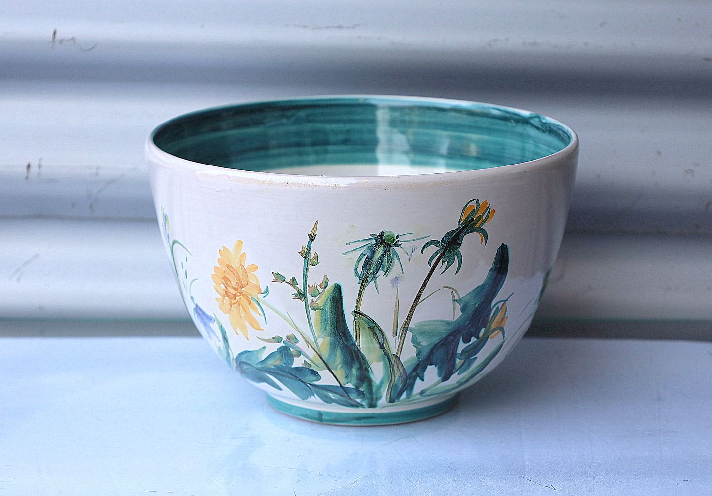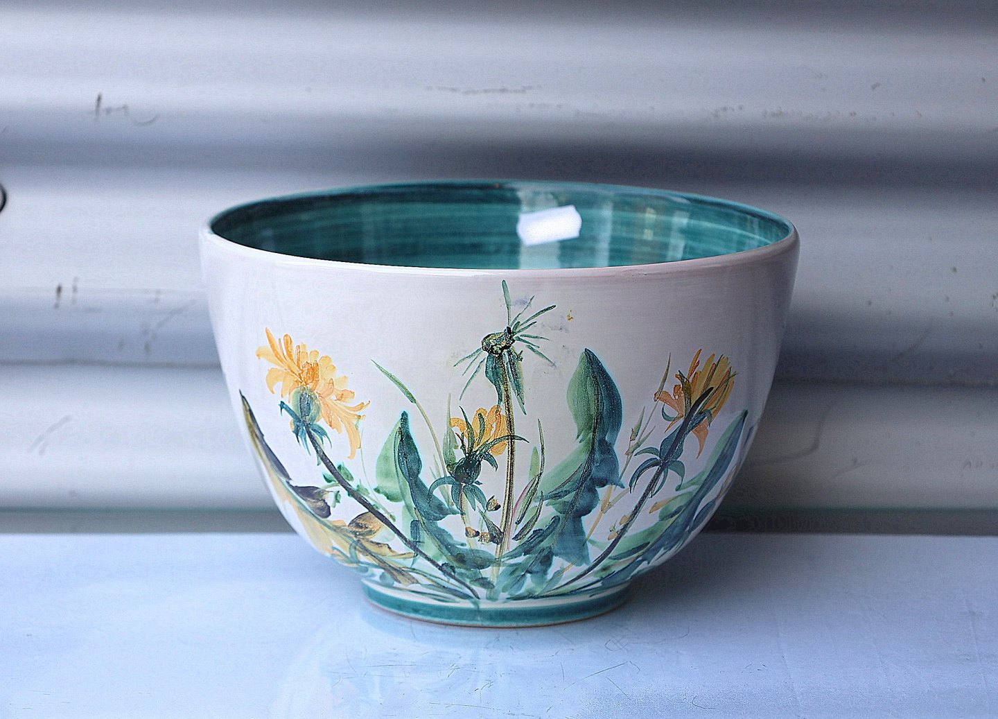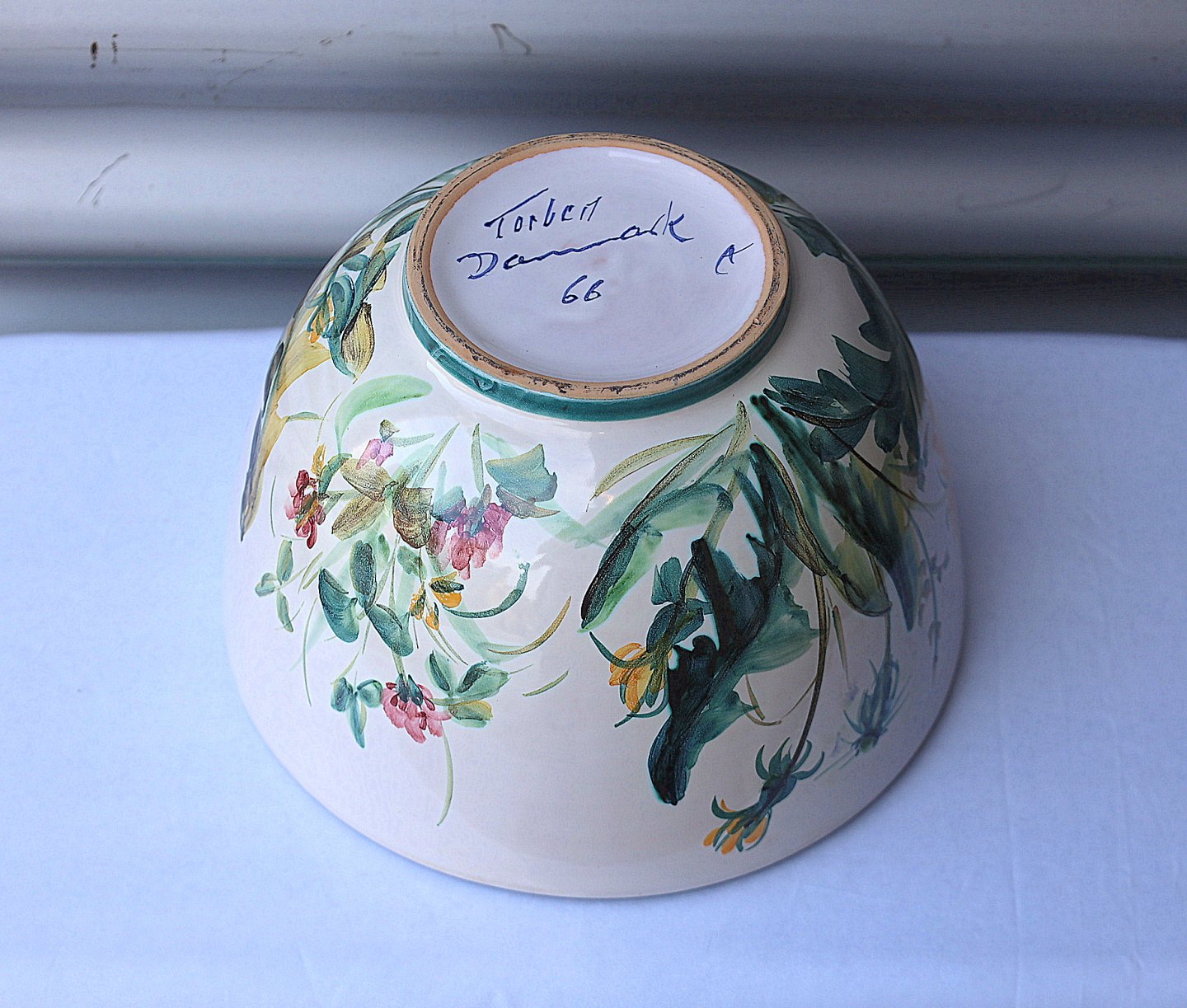 Torben Keramik, Denmark, 66. Keramik skål hvidglaseret og dekoreret med grøftekantsblomster.