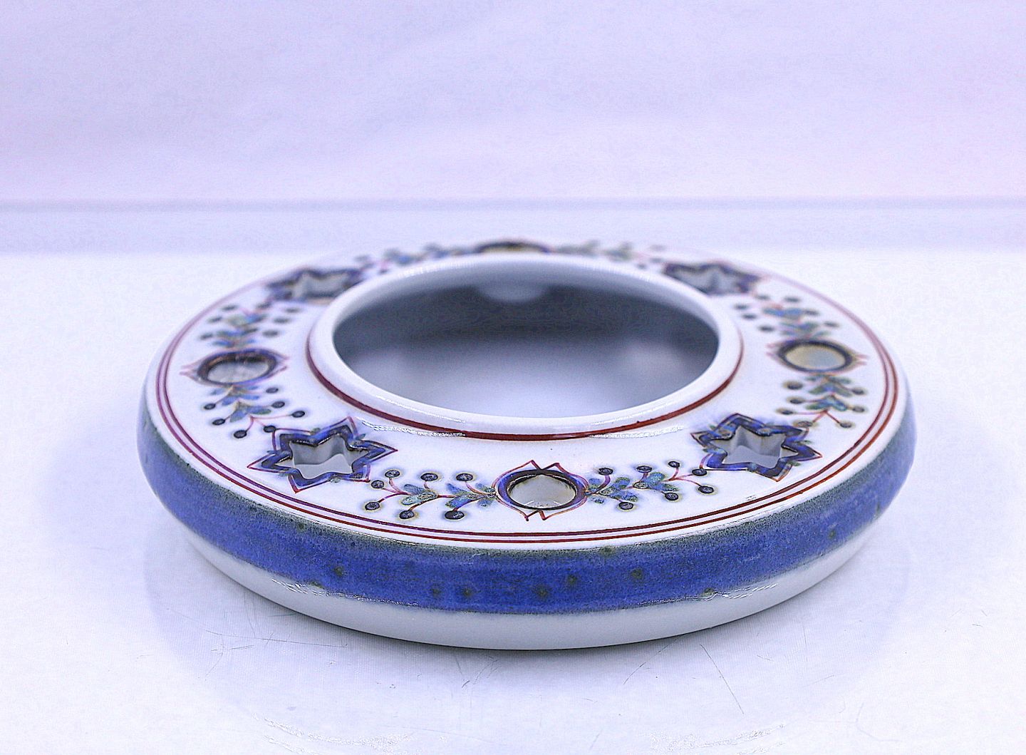Aluminia, rund, Tenera, jule lysestage, nr 556/3359, til 4 kertelys. Tenera-kransen er i blå farver.