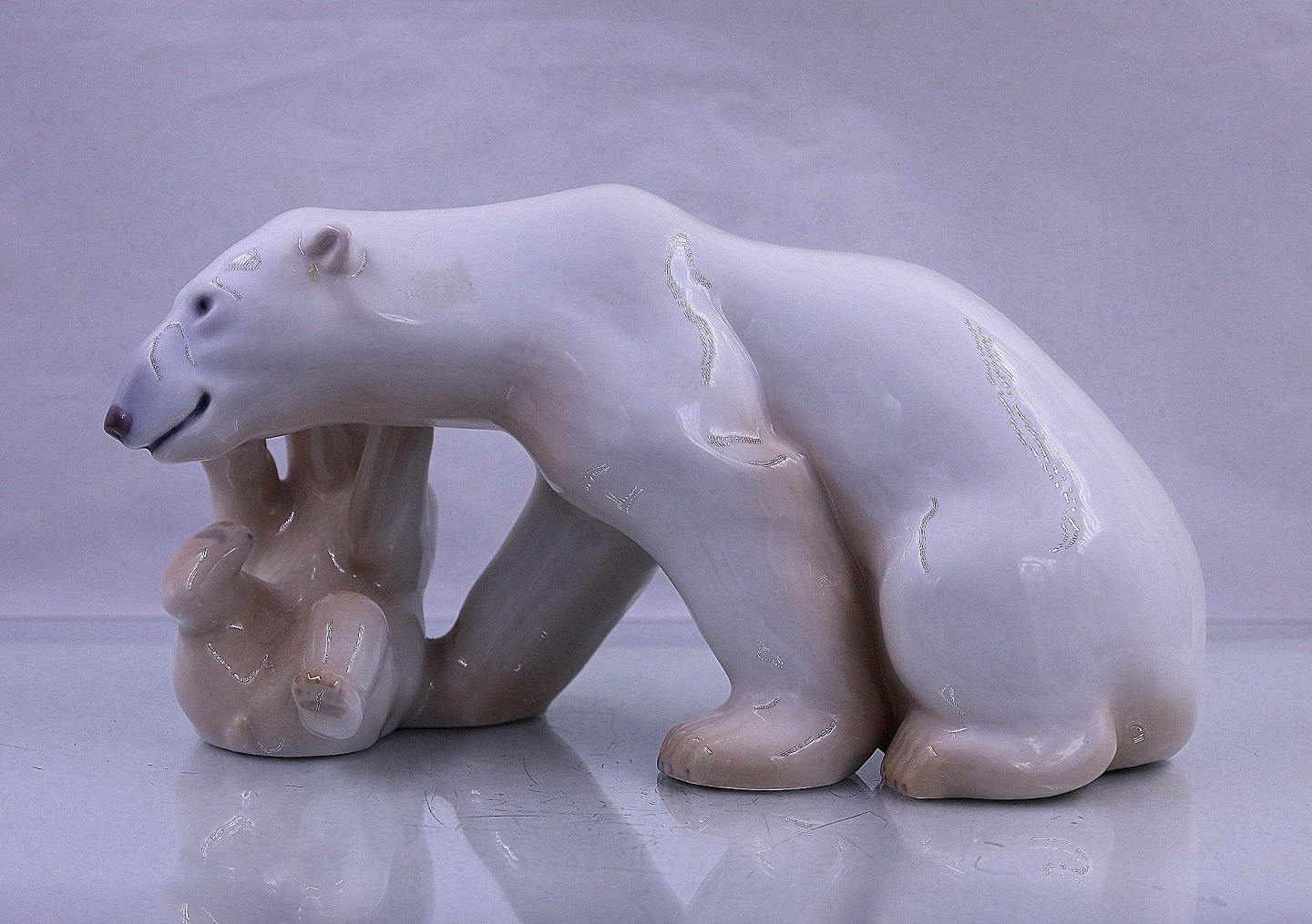 Bing & Grøndahl. Isbjørn med unge, nr. 2239. Mor og barn. Figuren er 1. sortering og i hel og fin stand