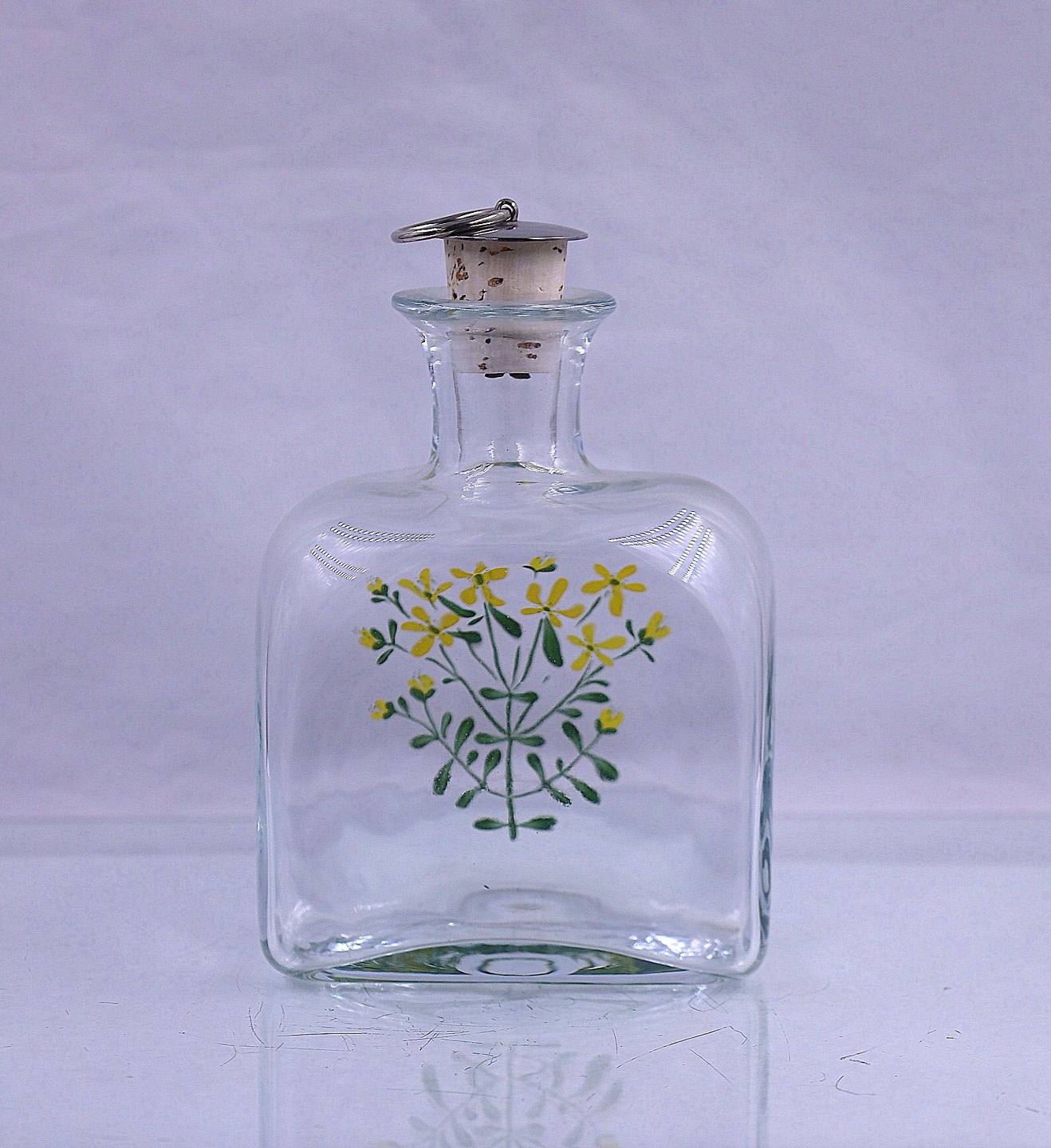 Holmegaard Glasværk. Flora karaffel. Karaffel med påmalet urtemotiv.