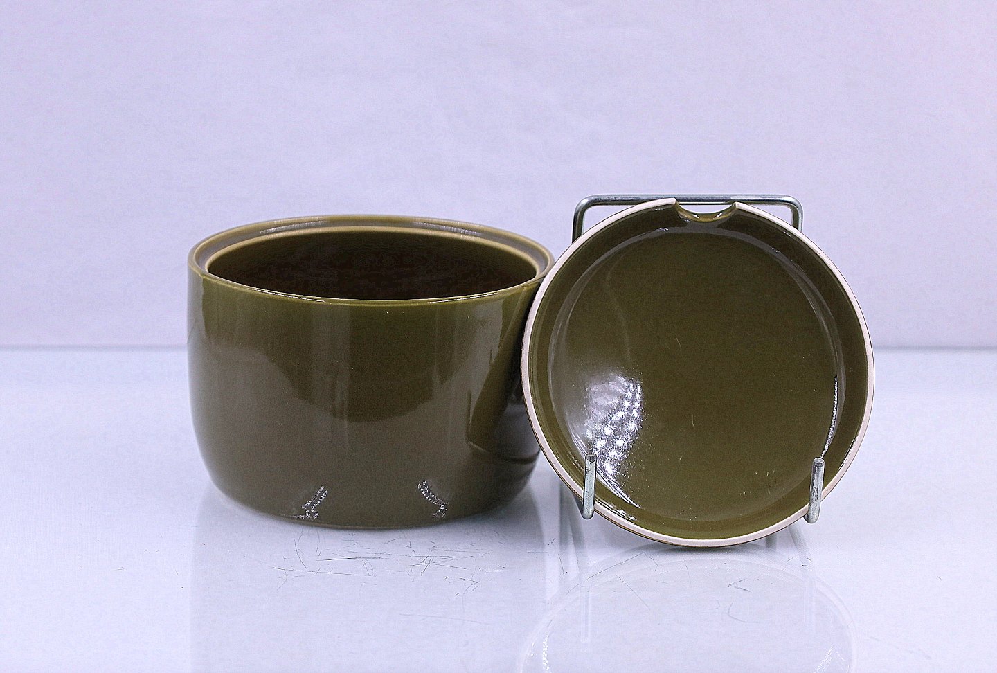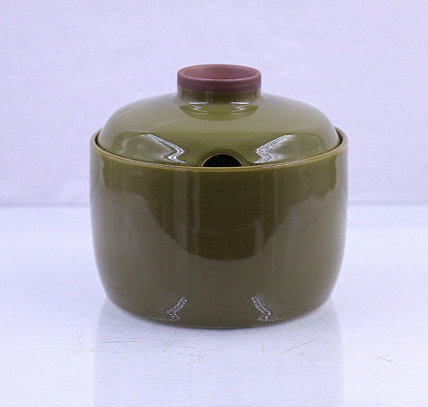 Aluminia, Timiana, fajance. Sukkerskål lmed låg, hel grøn. Produceret fra ca. 1960 til 1969.