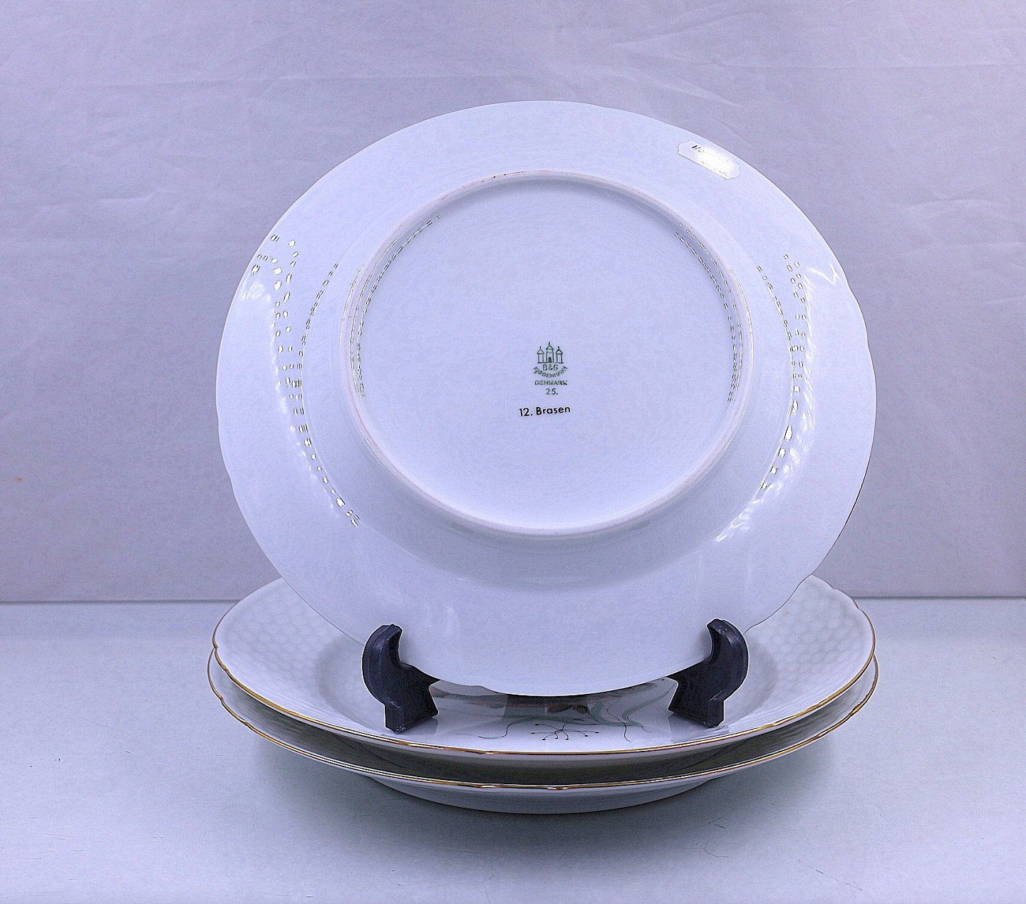 Bing & Grøndahl. Fisketallerken, nr. 25. Motivet er 12. Brasen (Abramis brama). Tallerkenen er af hvidt porcelæn med skelkant og guldkant.
