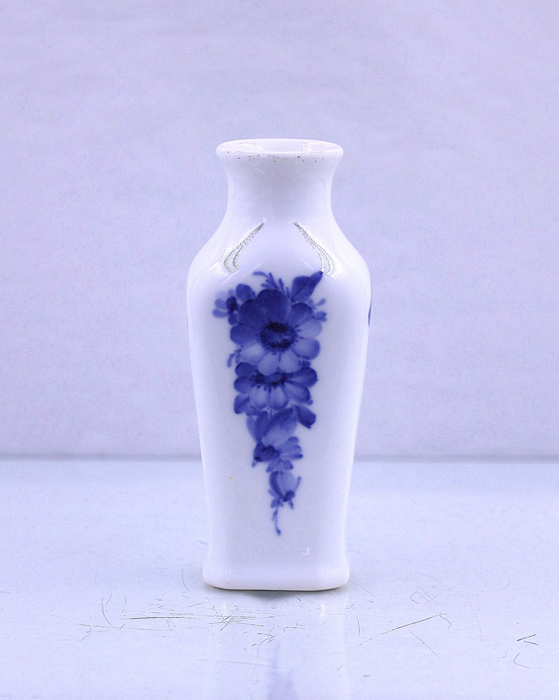 Royal Copenhagen. Vase, nr. 10/8256, flettet kant. Blå blomst hører til rækken af hvid og blå porcelæn Royal Copenhagen har lavet.