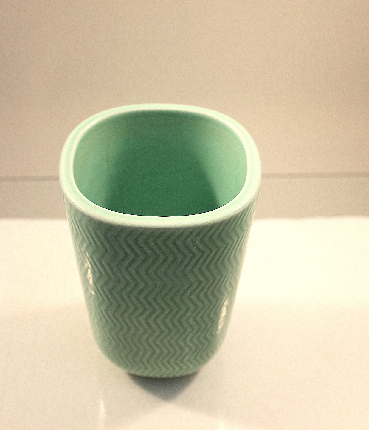 Aluminia Marselis vase nr. 2645. 4-kantet vase, vasen er mint grøn med bølge mønster.