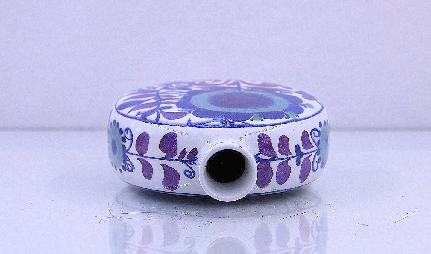 Royal Copenhagen Fajance vase. Tenera rund vase, nr. 211/3102. Vasen er dekoreret med et blå/lilla mønster.