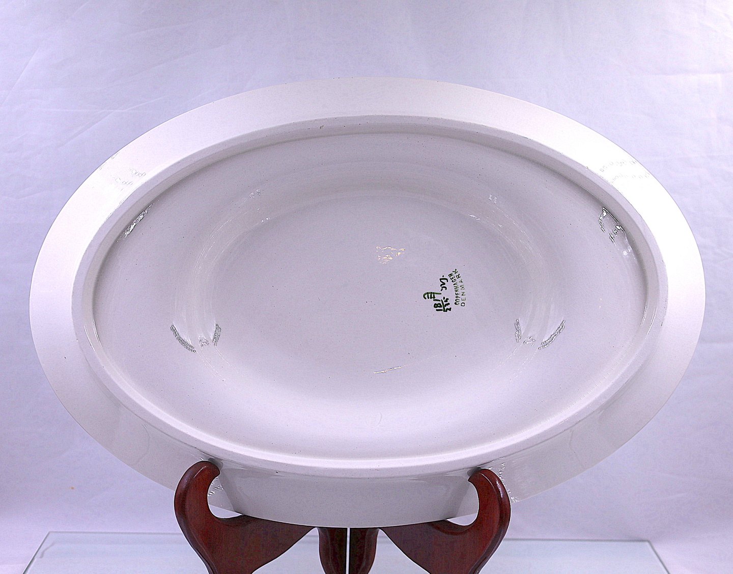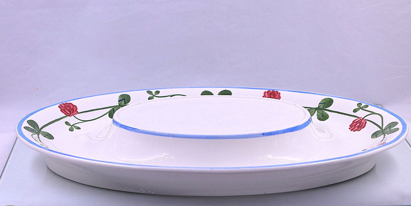 Aluminia. Rødkløver ovalt underfad til terrin, nr. 181/235. Fadet er dekoreret med rødkløverblomster og grønne blade.