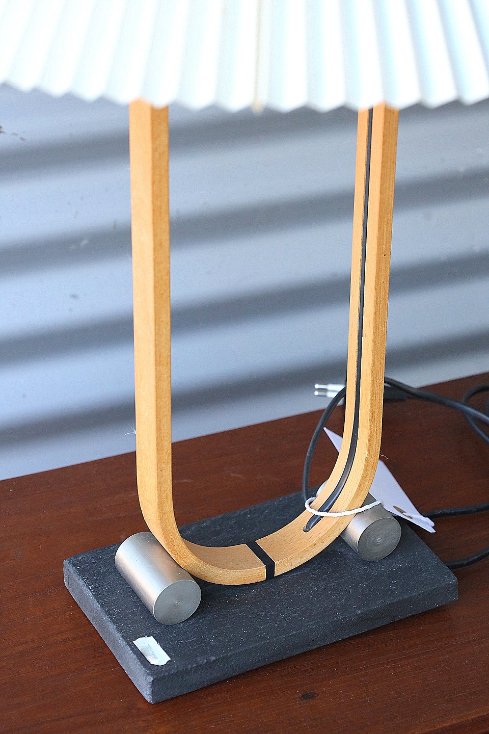 Caprani bordlampe, i formspændt bøg, og, Le Klint, plisseret skærm.
