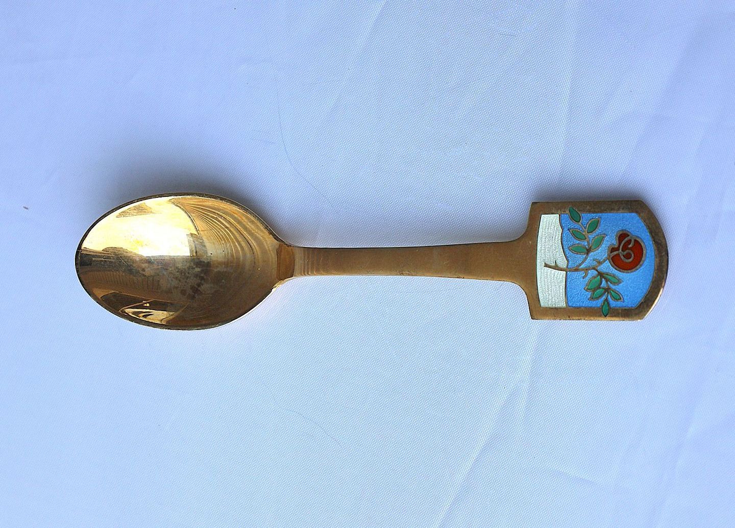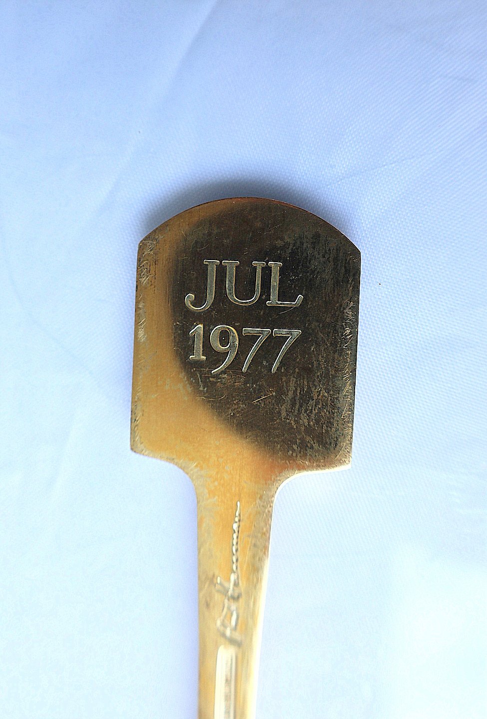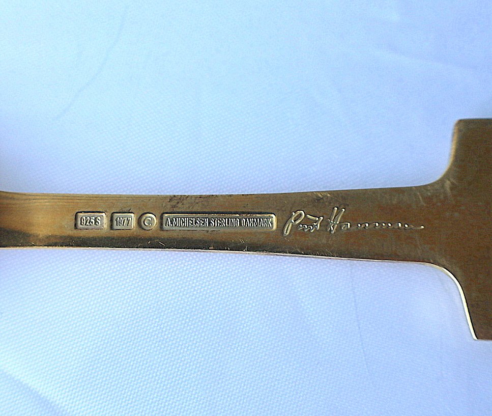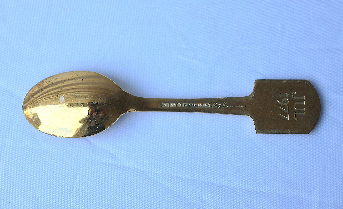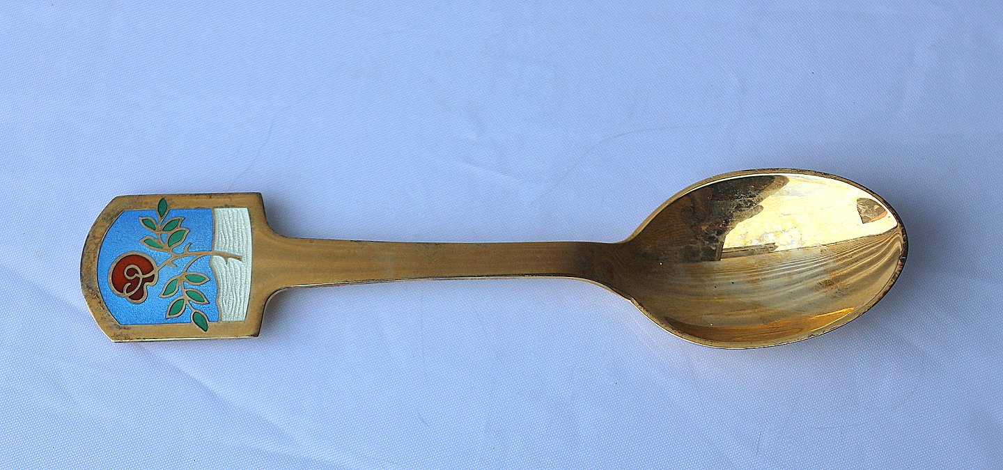Anton Michelsen juleske 1977. Skeen er forgyldt sølv, dekorationen er Vinter rose i emalje.