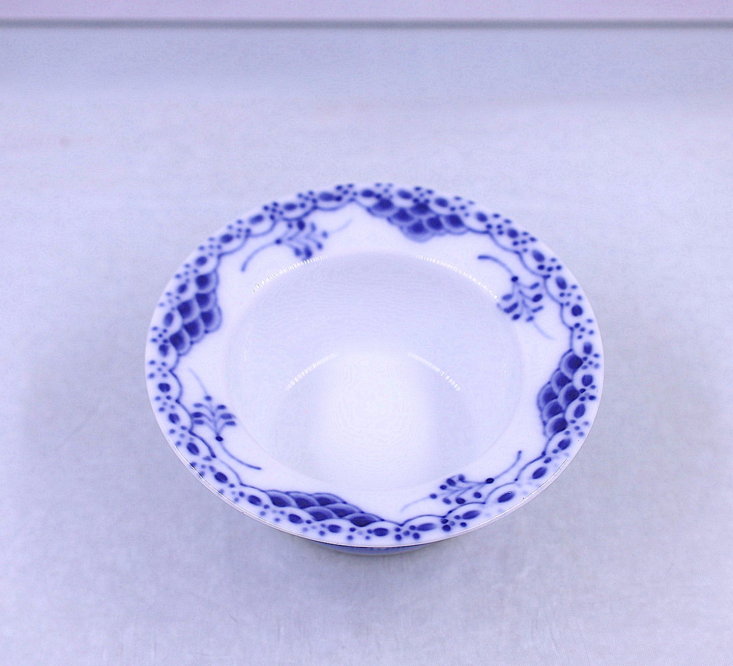 Royal Copenhagen. Musselmalet, halvblonde skål, nr. 1/687. Skålen er med udsvejfet kant og i de klassiske blå og hvide farver.