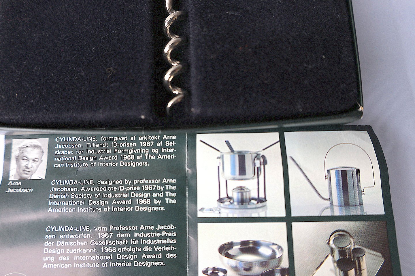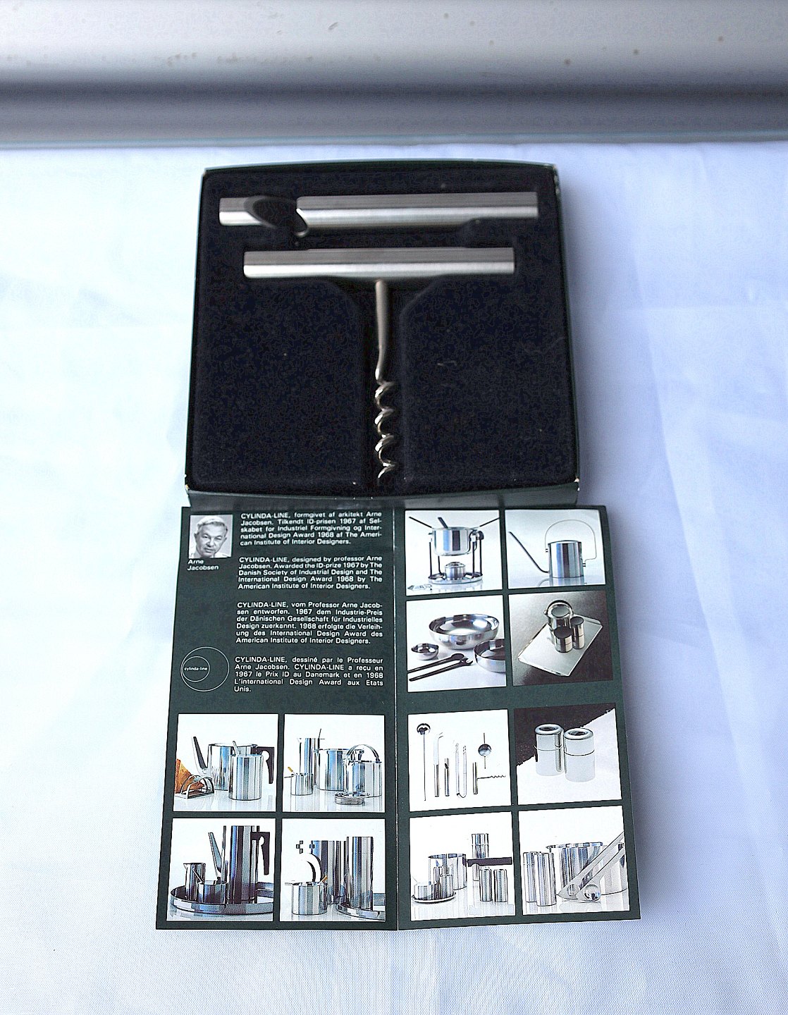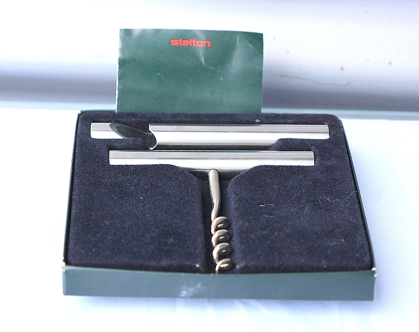 Stelton. Sæt med proptrækker og oplukker. Oplukkersættet er Cylinda Line og i rustfrit stål. Designet er minimalistisk.