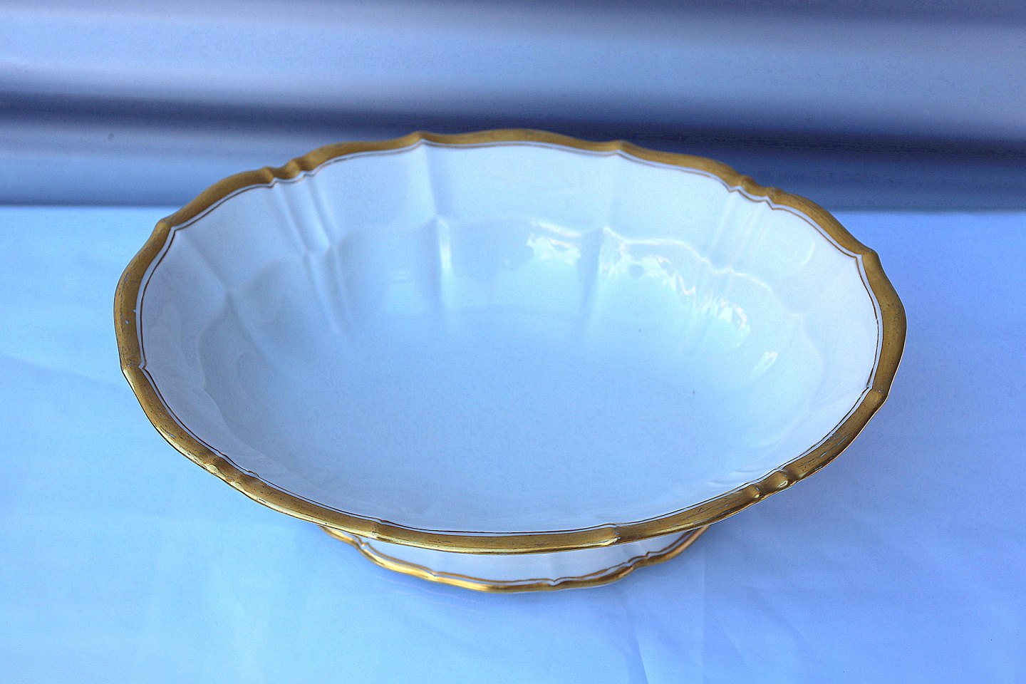 Skål i hvid porcelæn med tynd og bred gylden kant