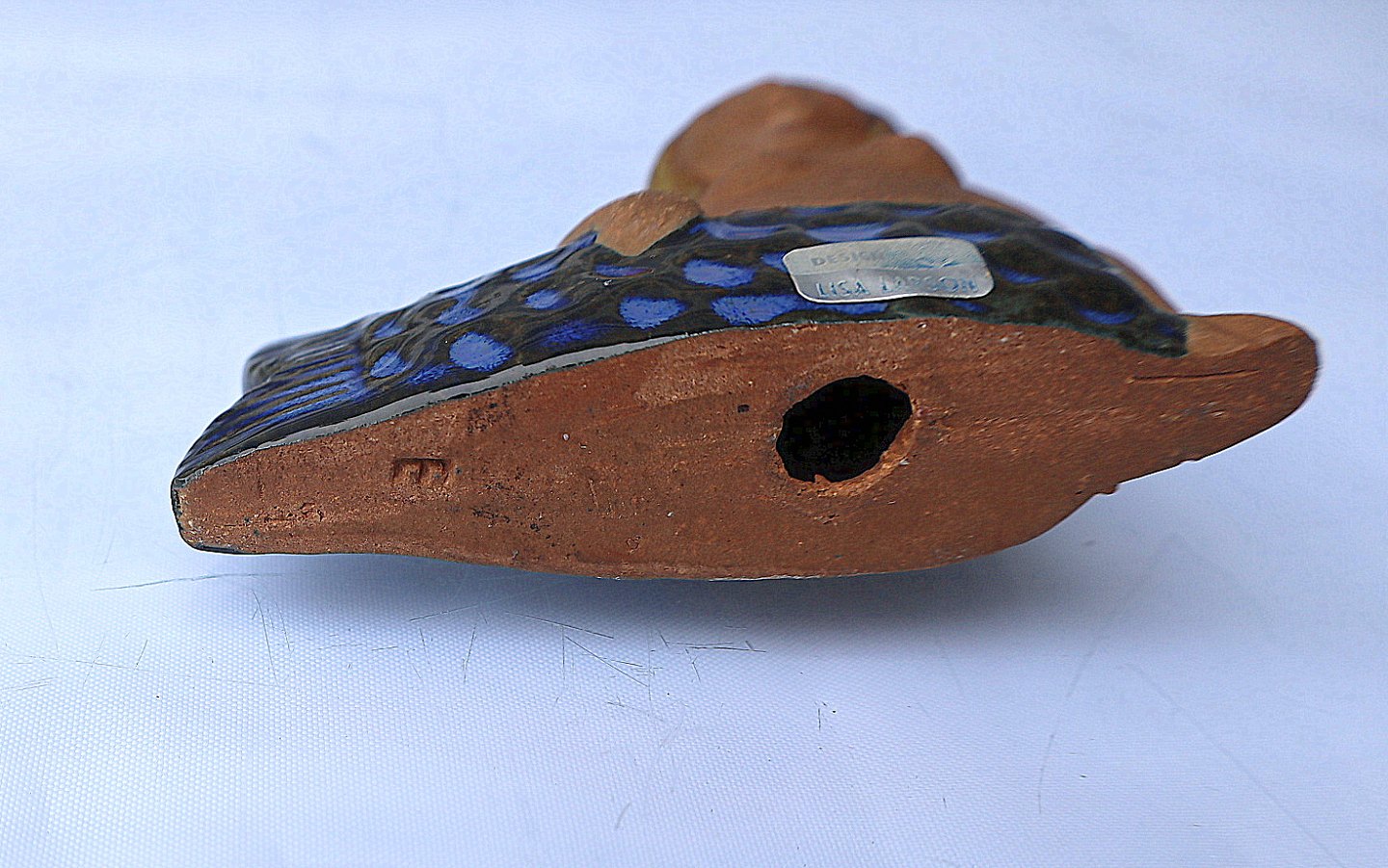 Lisa Larson, Gustavsberg. Keramik Havfrue. Havfruen har blå hale med lyseblå prikker, Havfruen har langt hår. Havfruen er fremstillet Gustavsberg, Sverige fra 1963.