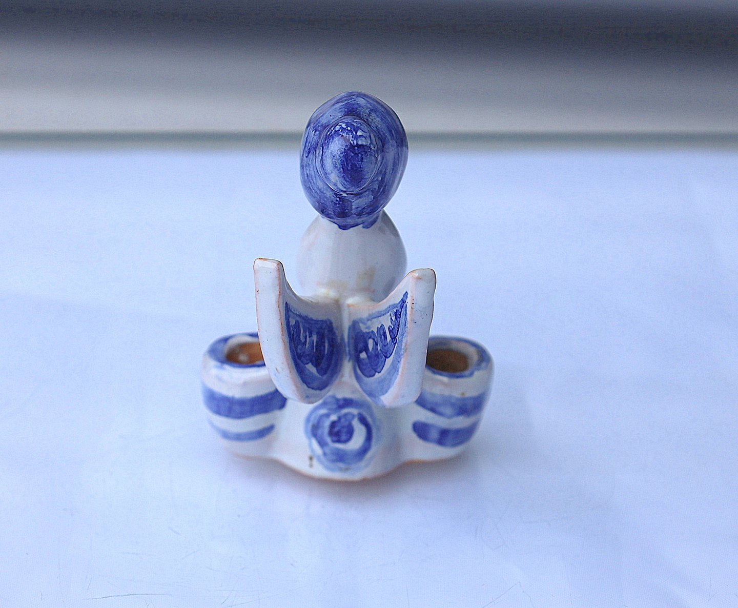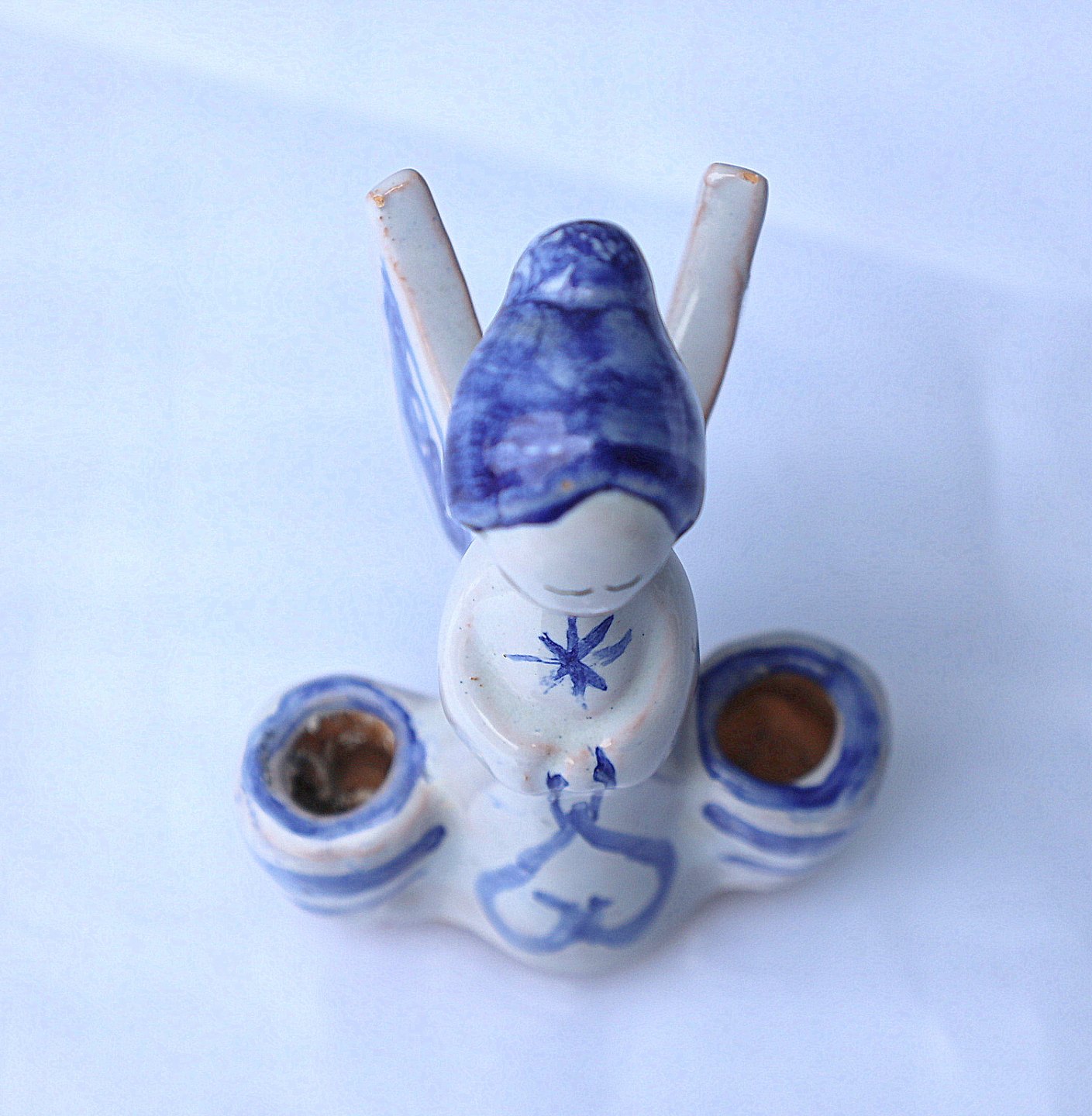 Keramik engel. Dameenglen er til 2 kertelys. Englen er holdt i blå og hvide farver. Dameenglen er håndmalet.